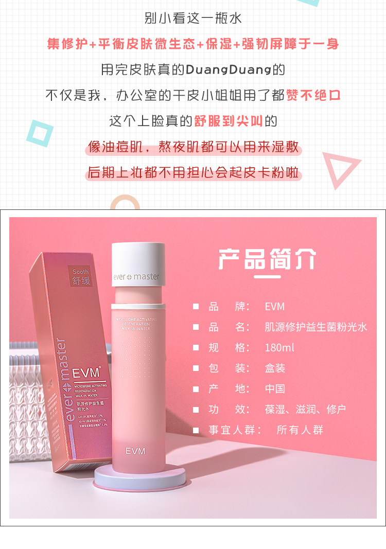 EVM Пробиотик, тонер, увлажняющее молочко для ухода за кожей