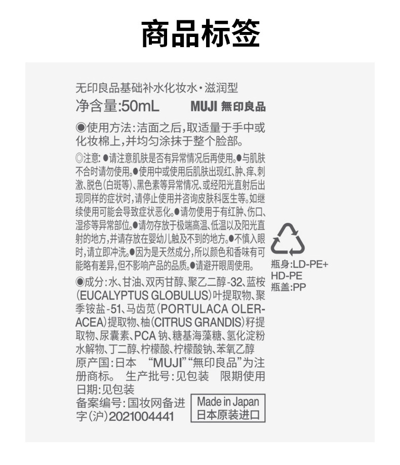 Muji, базовый увлажняющий питательный лосьон, влажный тонер для ухода за кожей
