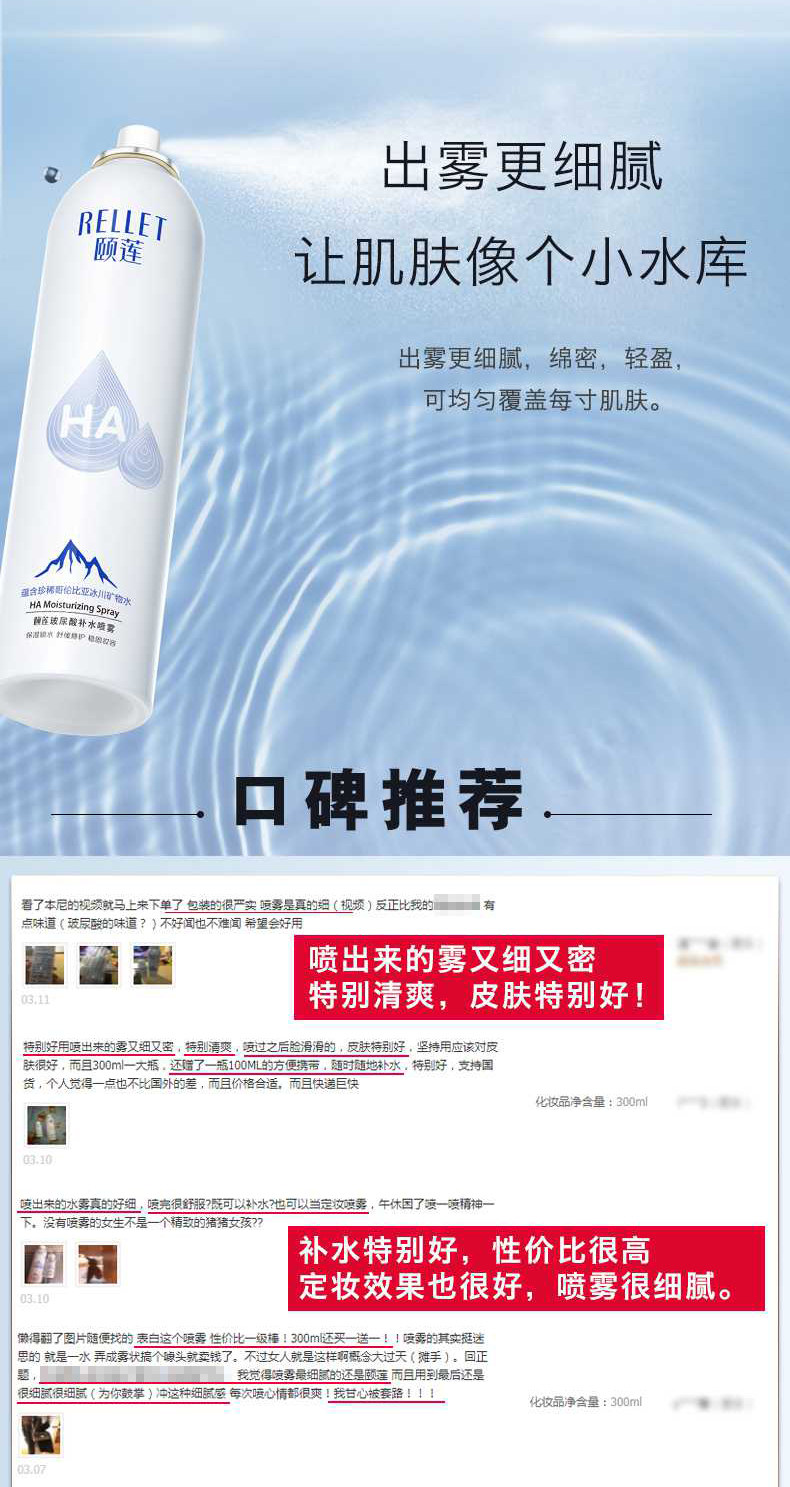 Спрей с гиалуроновой кислотой, увлажняющий освежающий лосьон, восстанавливающий тонер, 300 мл
