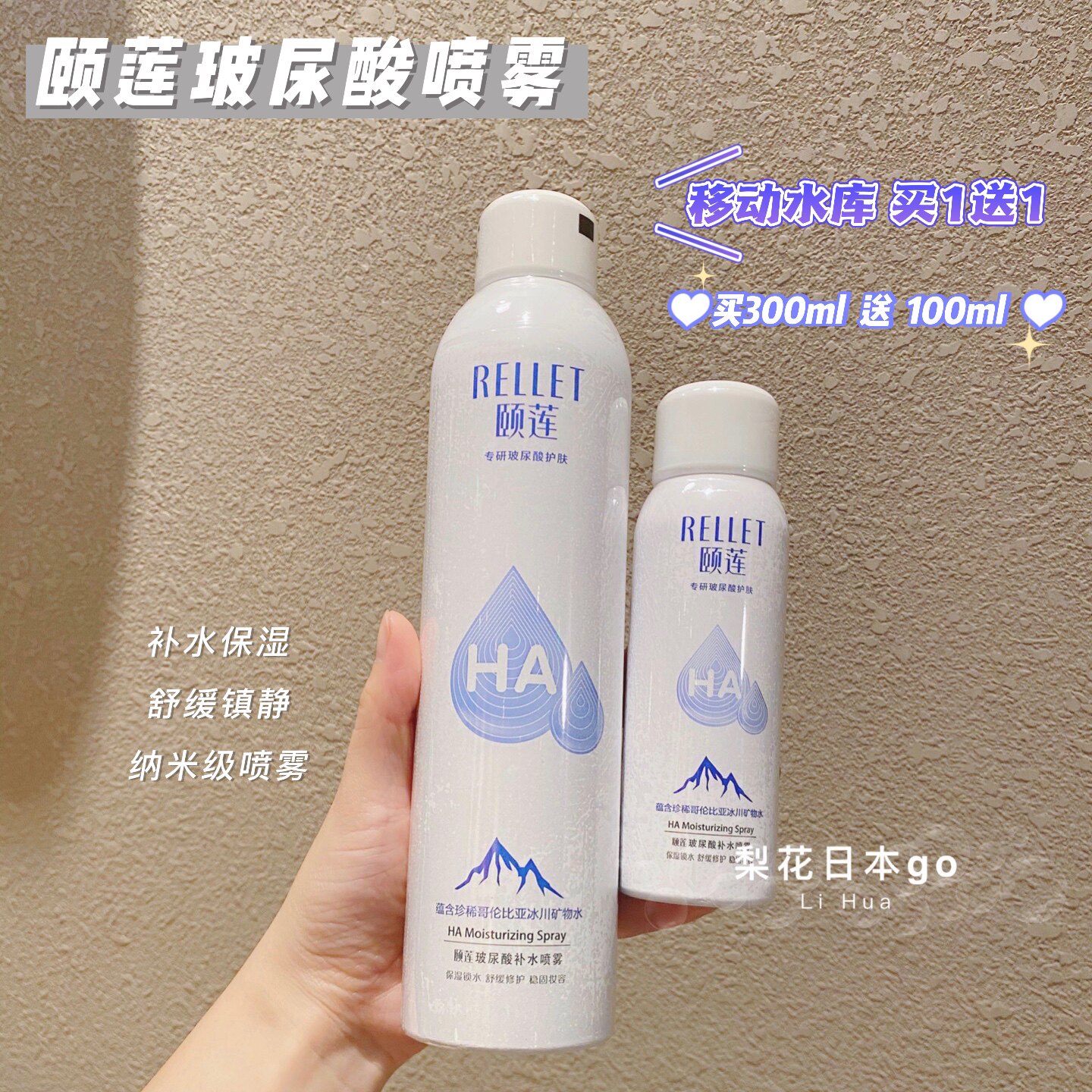 Вместительный и большой увлажняющий успокаивающий спрей с гиалуроновой кислотой, 300 мл, 100 мл