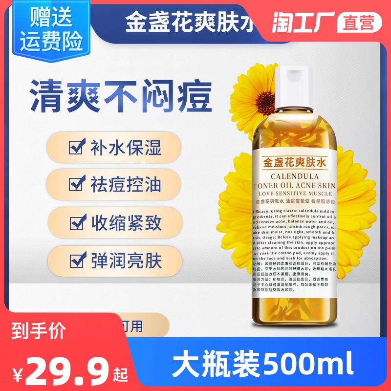 Успокаивающий тонер c календулой, освежающий увлажняющий влажный лосьон, 500 мл, контроль жирного блеска, анти-акне, сужает поры