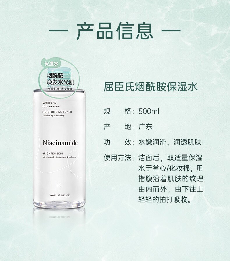 Watsons, осветляющий увлажняющий вместительный и большой универсальный тонер содержит никотиновую кислоту подходит для мужчин и женщин, осветляет кожу, 500 мл
