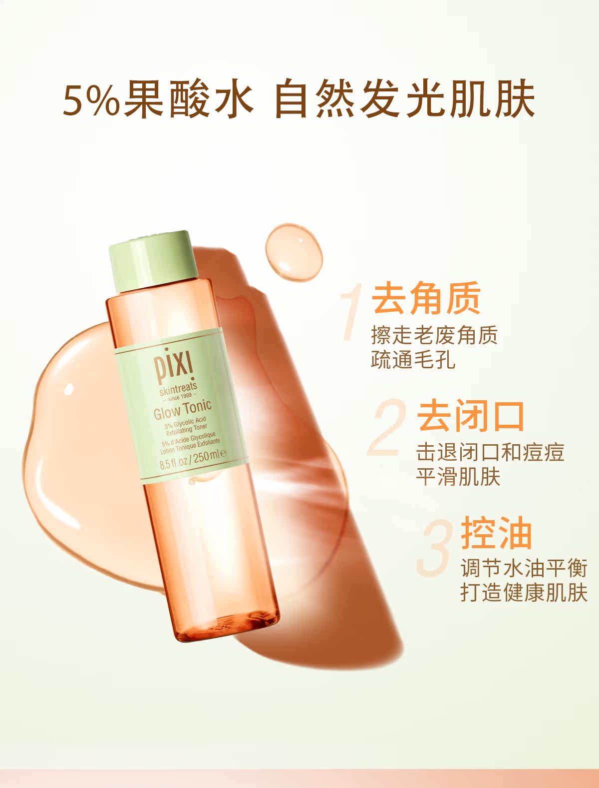 pixi Фруктовая кислота, увлажняющий тонер, отшелушивающий лосьон для ухода за кожей, контроль жирного блеска, сужает поры