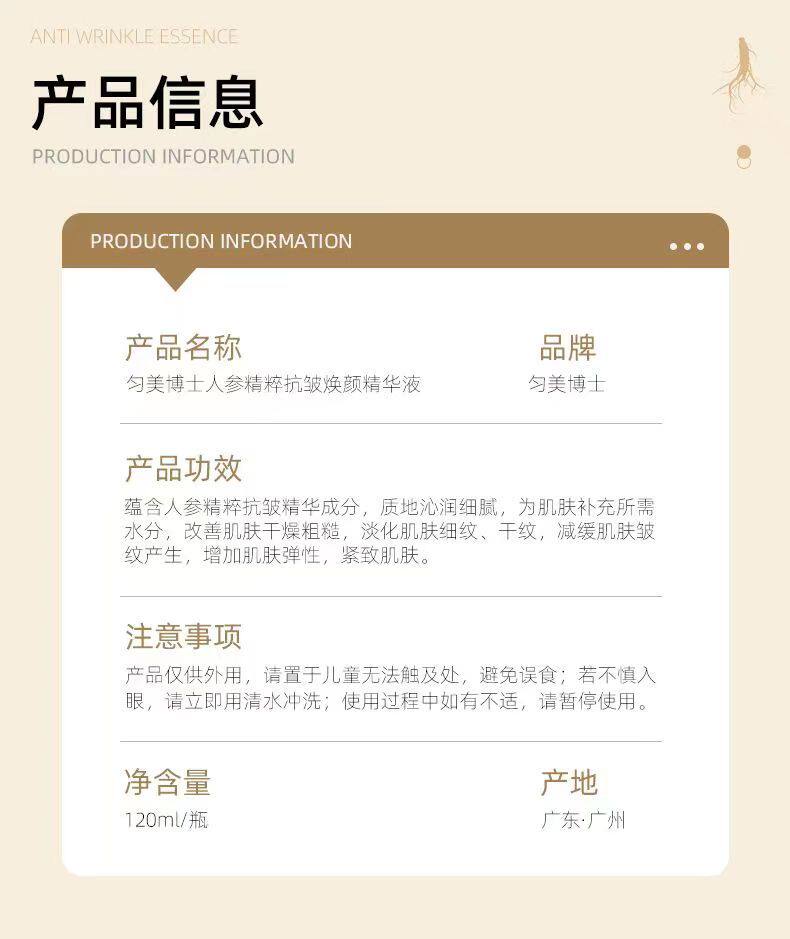 Сыворотка с женьшенем, эссенция, разглаживающий увлажняющий питательный тонер, против морщин, сужает поры