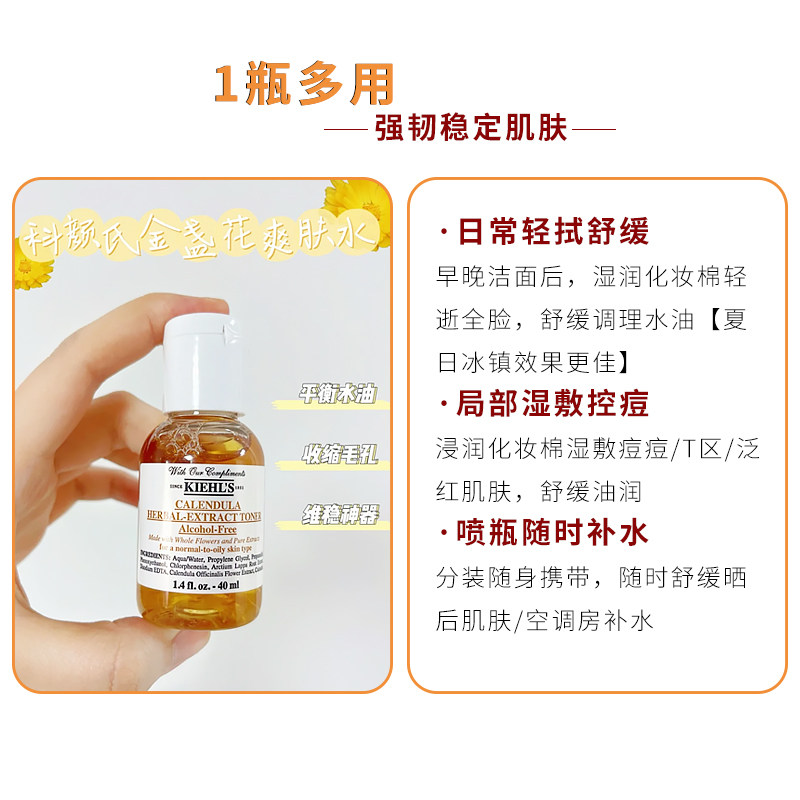 Успокаивающий увлажняющий тонер c календулой для ухода за кожей, 40 мл, анти-акне, контроль жирного блеска, сужает поры, пробник