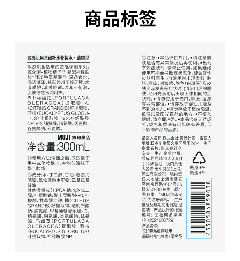 Muji, базовый увлажняющий освежающий влажный лосьон для чувствительной кожи