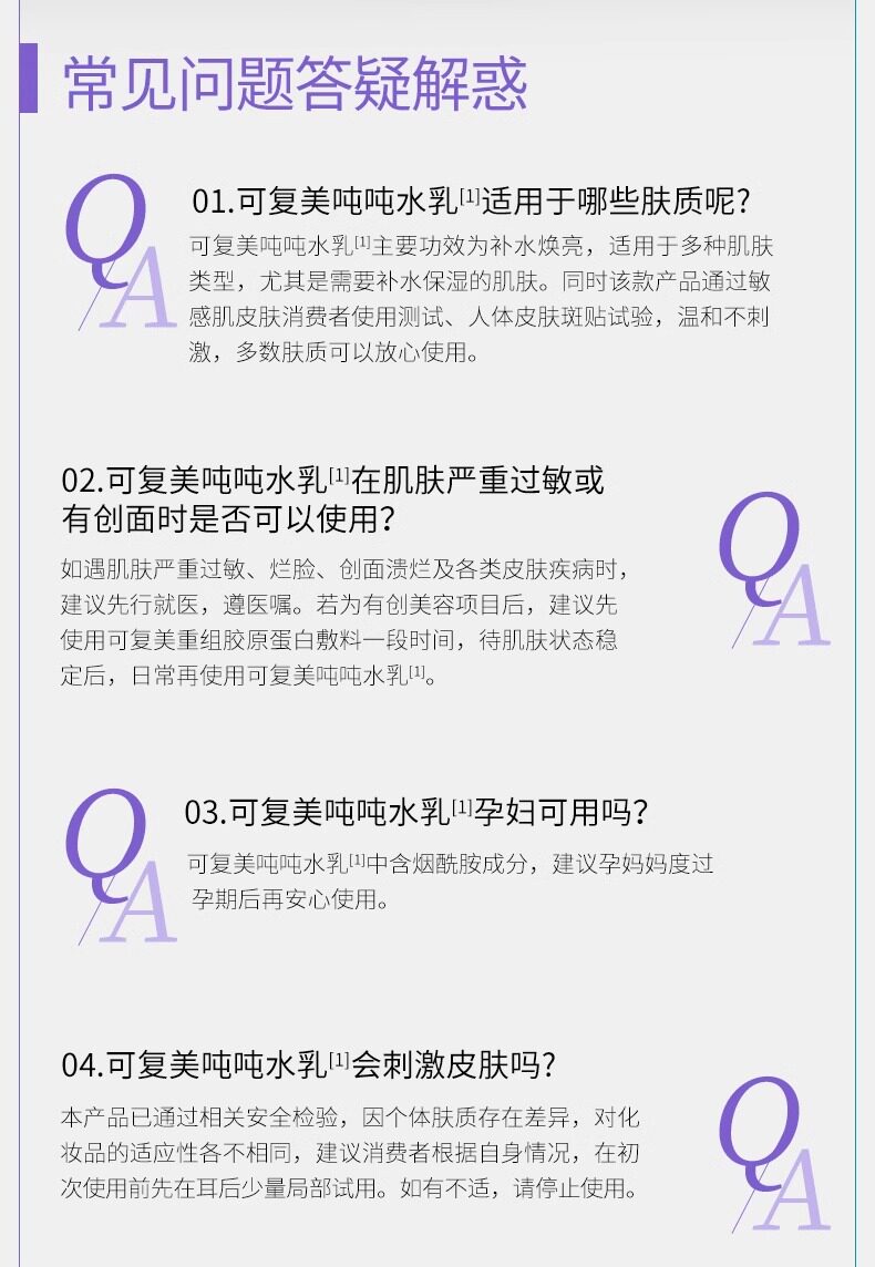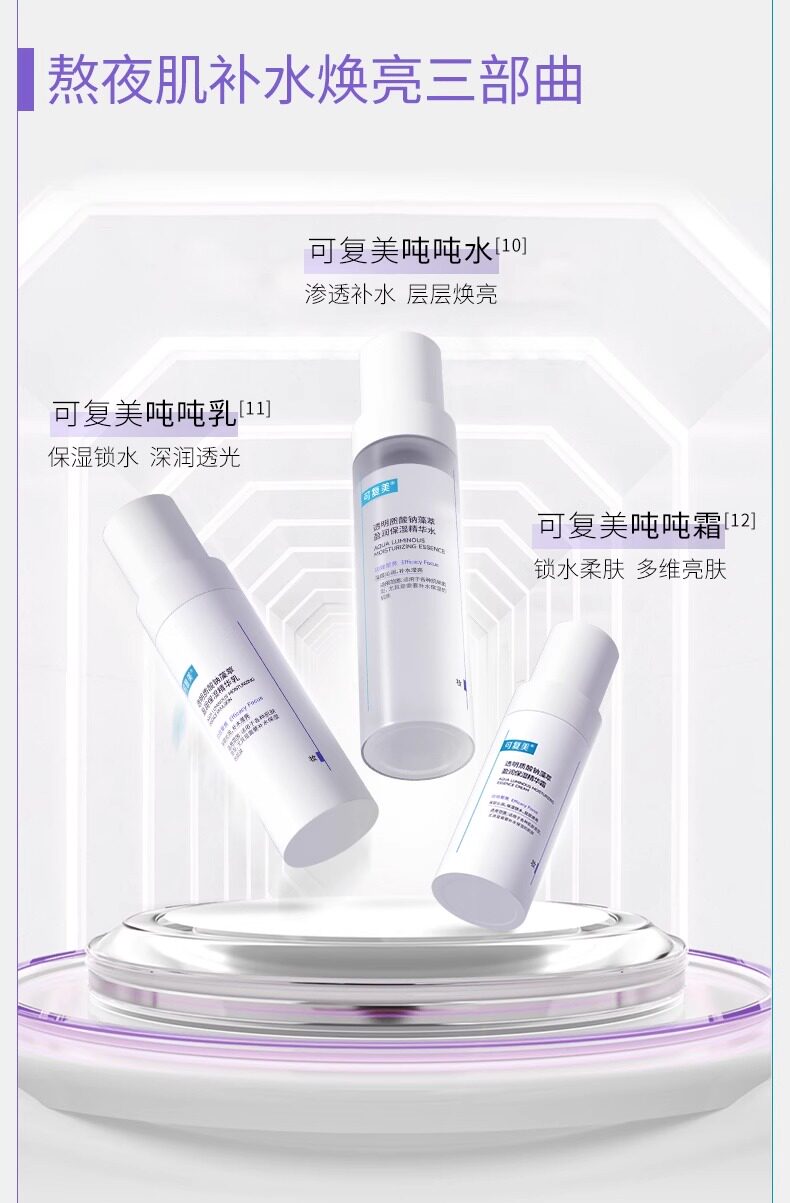 可复美 Молочко, прозрачный комплект, увлажняющий гиалуронат натрия, тонер, восстанавливающий лосьон