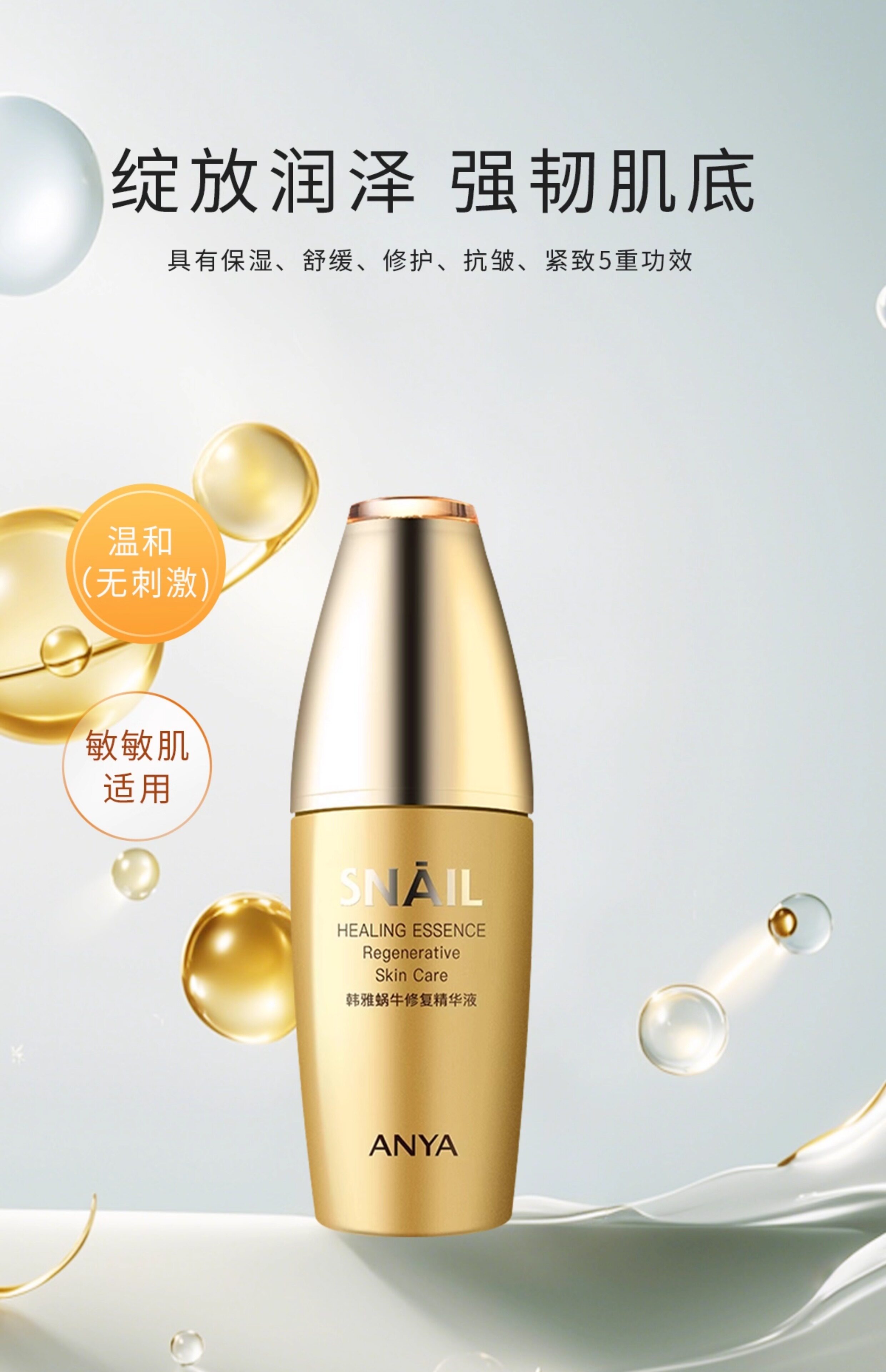 韩雅 Разглаживающая увлажняющая восстанавливающая успокаивающая сыворотка с улиточным секретом, против морщин