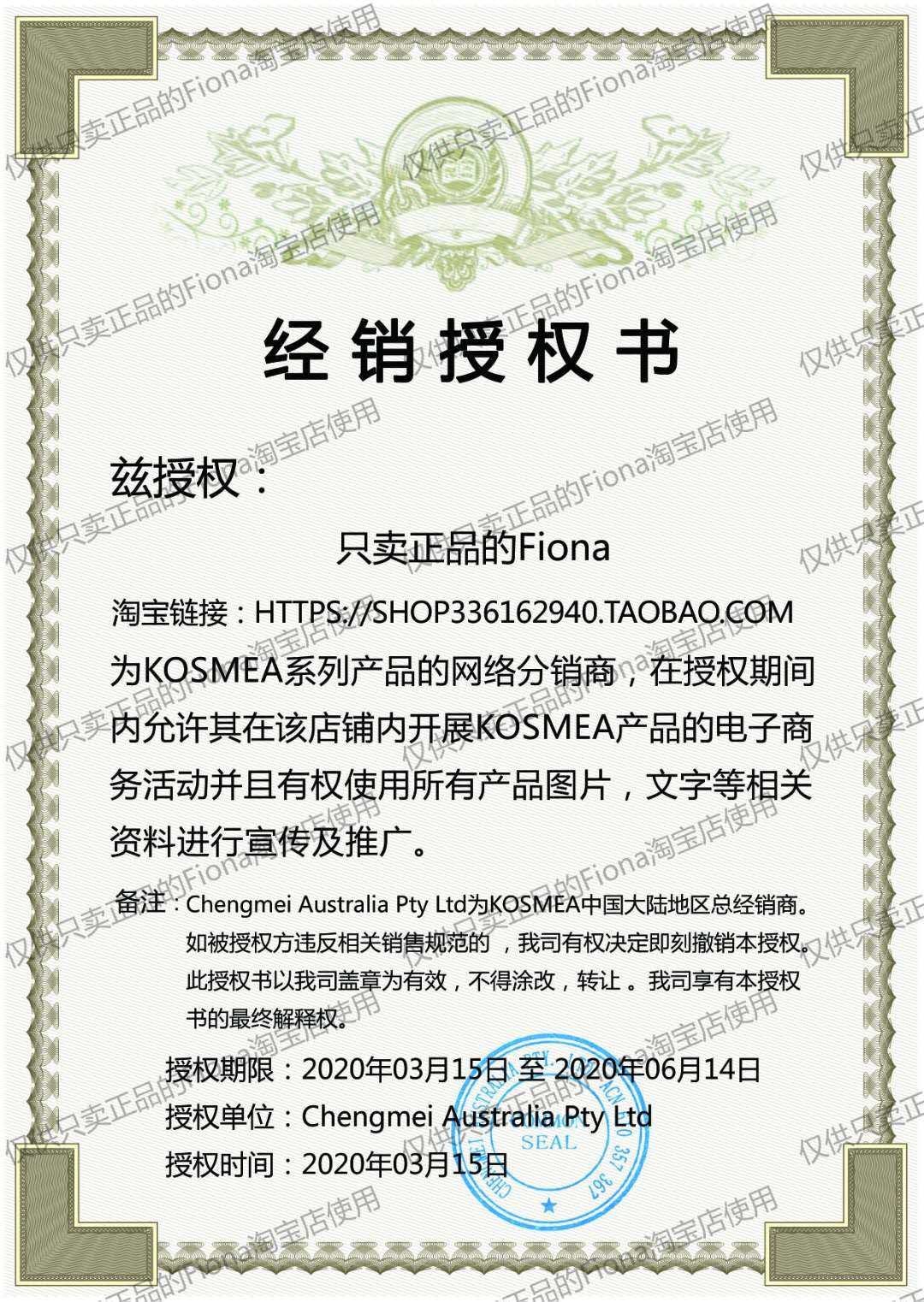 Продавец:祇卖正品的Fiona