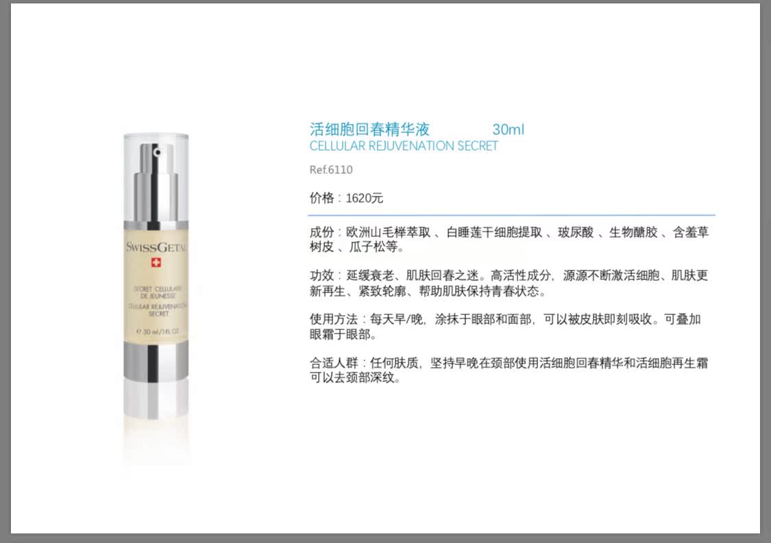 Швейцария Swissgetal Jie, ее живые клетки Back Spring Essence 30 мл Remno Ref.6110 Runyan Essence