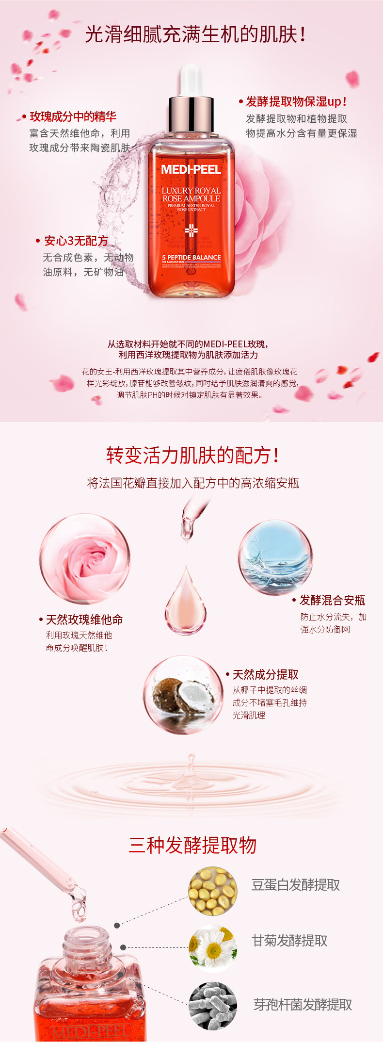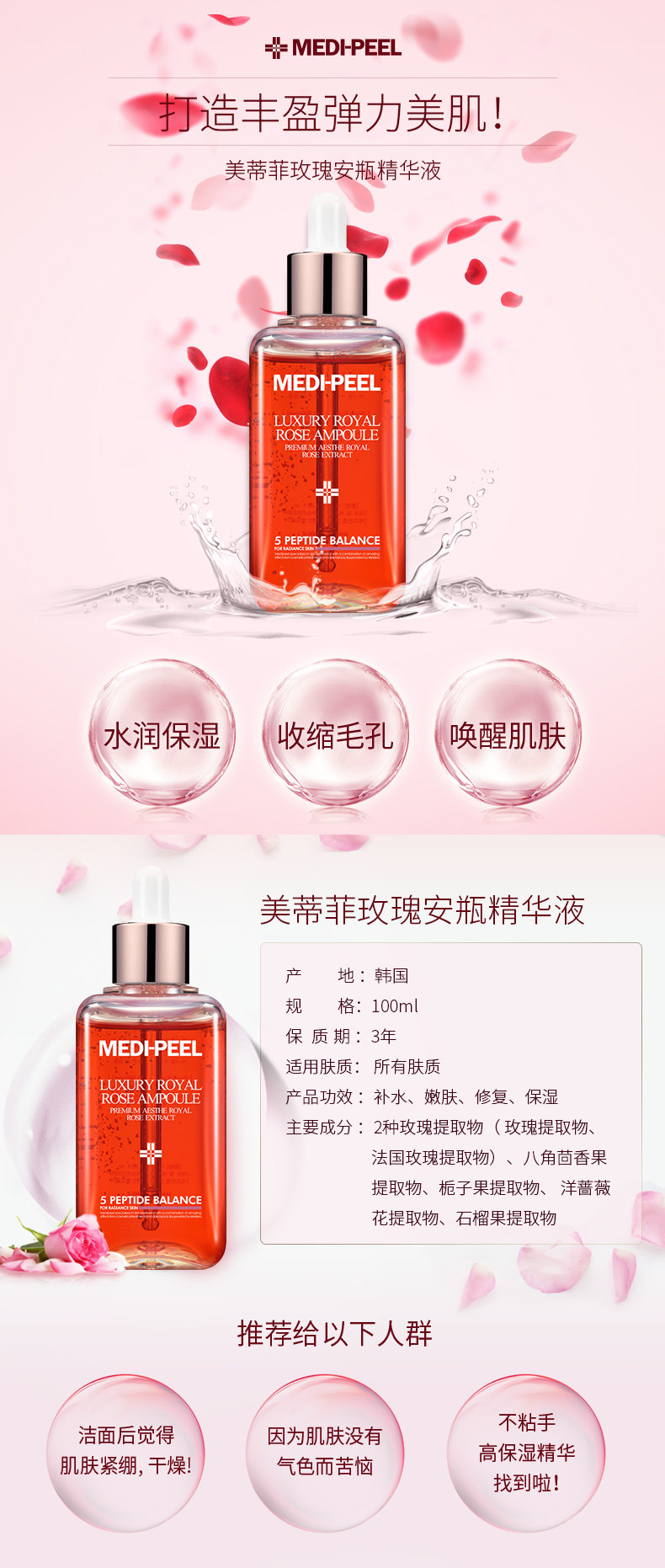MEDI-PEEL/美蒂菲 Эссенция с розой в составе в ампулах для лица, разглаживающая увлажняющая сыворотка, против морщин, 100 мл
