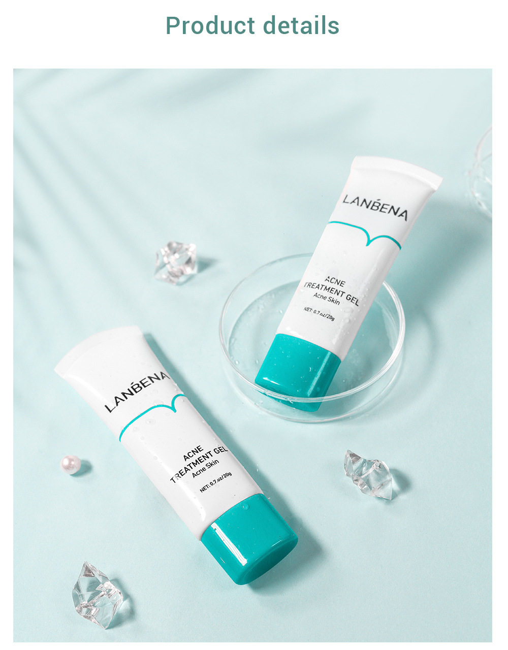 Lanbena, гель, эссенция, крем от прыщей от черных точек, анти-акне, сужает поры, 20г