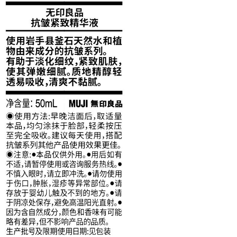 Muji, разглаживающая сыворотка для ухода за кожей, против морщин