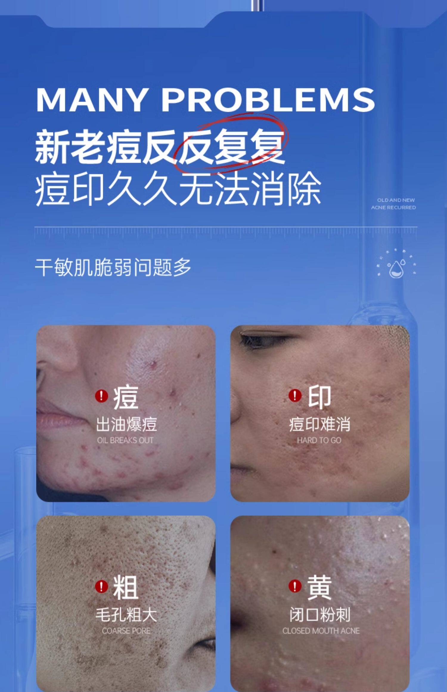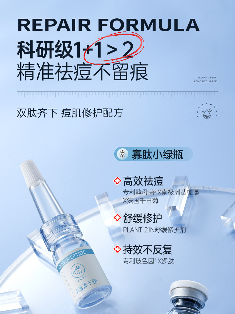 Олигопептид, лиофилизированный порошок, осветляющая сыворотка от черных точек, анти-акне, скрывает прыщи, сужает поры