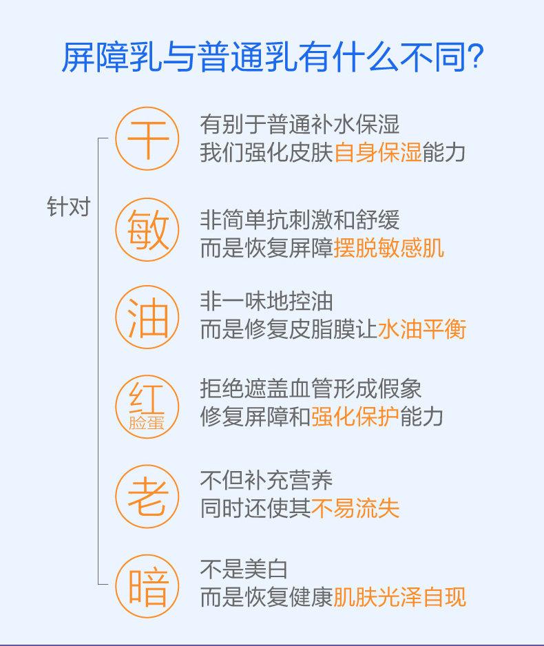 | эффект | *Этот продукт богат керамидами, которые могут быстро проникать в кожу, образуя и поддерживая защитную пленку липидной сети.Имеет функцию длительного увлажнения, повышения эластичности и восстановления кожного барьера.Добавляйте этот продукт при использовании других функциональных продуктов, чтобы предотвратить повреждение барьера. * Экстракты ромашки и овса высокой чистоты восстанавливают кожу и повышают комфорт. *Нежирный на ощупь, гладкий и гладкий, подходит для всех типов кожи. | ||||