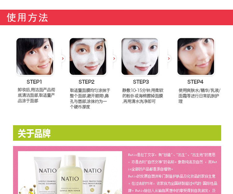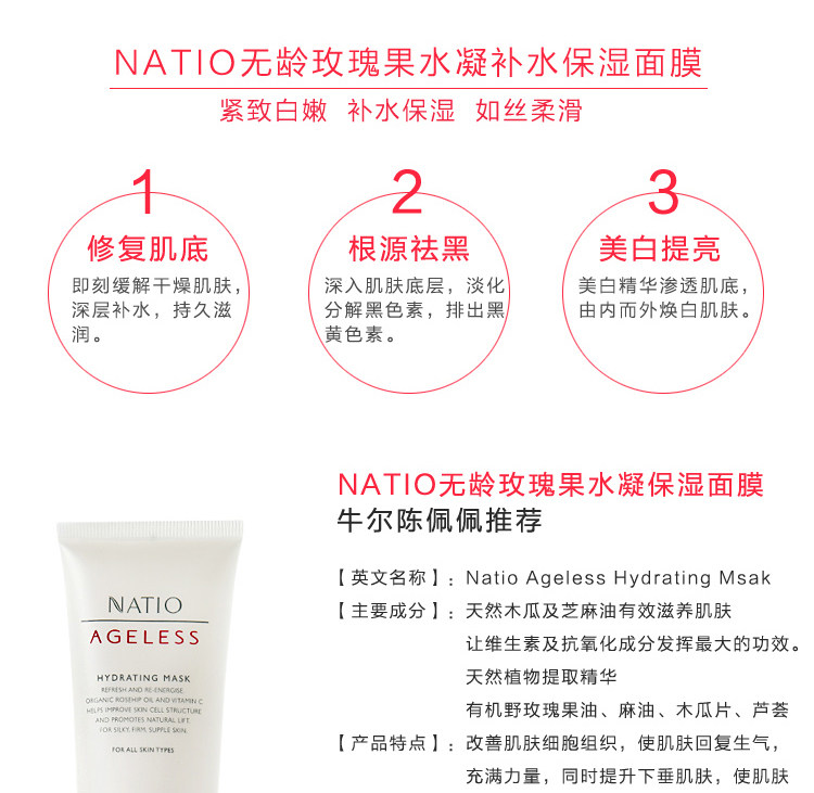 Natio - старый бренд в Австралии ~ Вся линейка брендаНежный, эффективный, экономичныйСущностьЭта маска используетУсовершенствованная технология ухода за кожей позволяет витаминам и антиоксидантам играть наибольшую роль.Улучшить ткань клеток кожи, в то время какУлучшает провисающую кожу, делая кожу гладкой, твердой и полнойПолем Объединяя различные драгоценные натуральные ингредиенты, эффективно питая кожу.Основным эффектом этой маски является увлажнение и увлажнение.Сильная увлажняющая способность~ Используйте его, когда он очень сухой, и кожа, очевидно, почувствует, что удержание влаги улучшается, и она имеет очень естественный вкус.