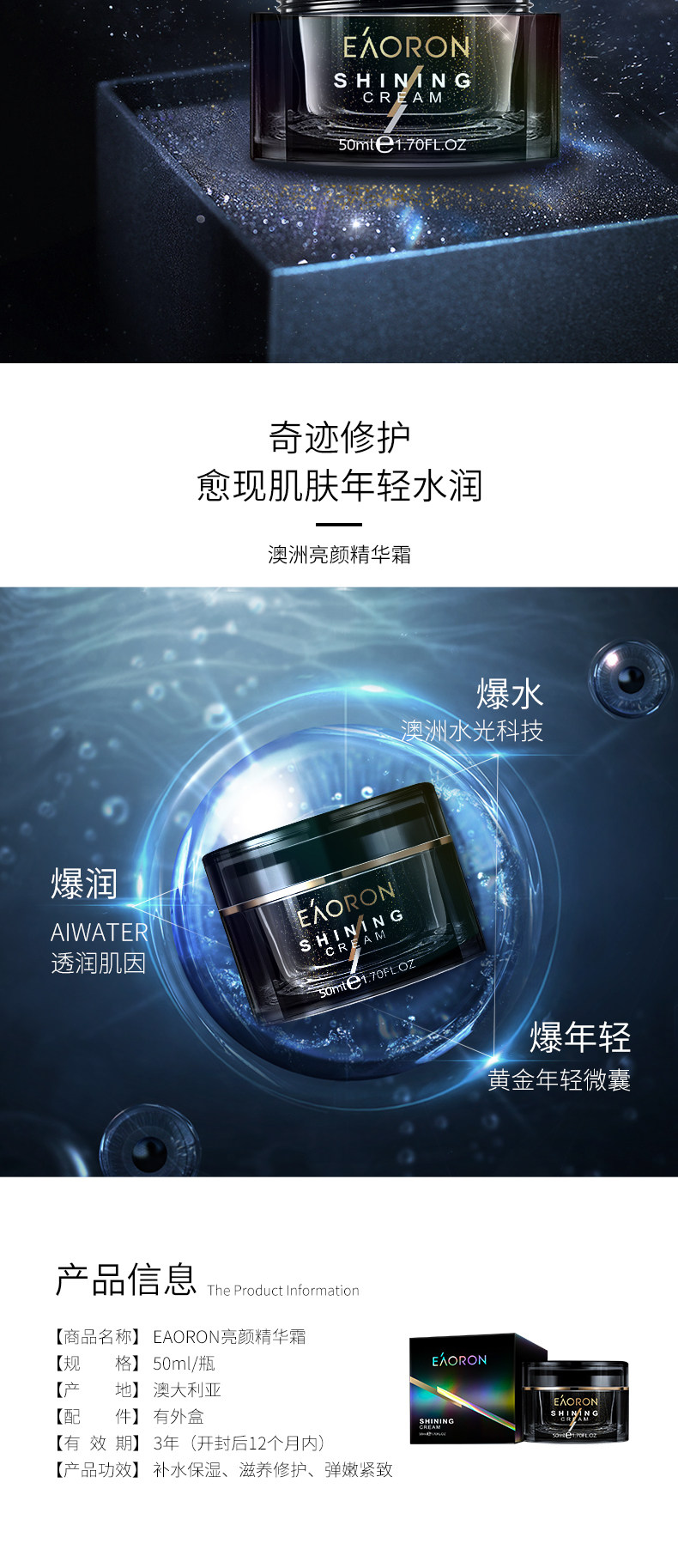 Австралия Eaoron Australia Cream Little Black Bottle Plinting, увлажняющий, увлажняющий ленивый воздушный кремовый кремо