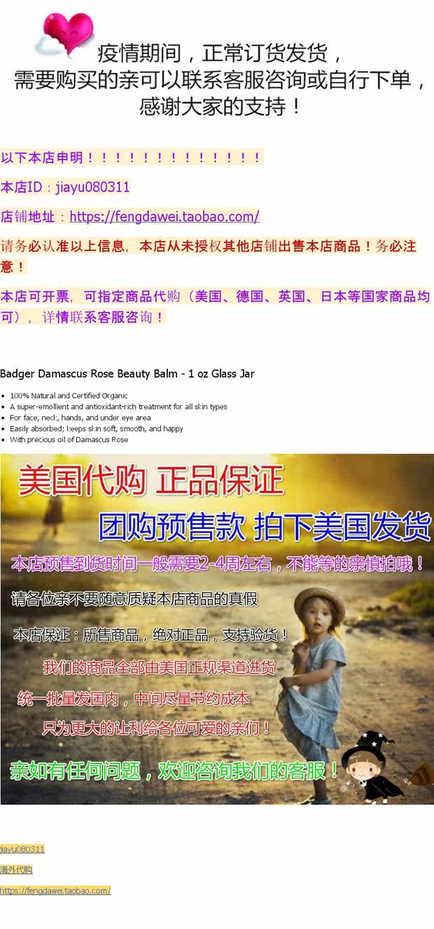 Badger Damascus Rose Beauty Balm -1 унция стеклянная банка