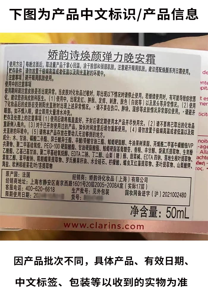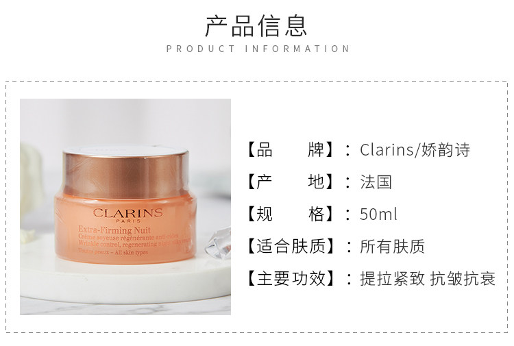 Clarins, классический костюм, увлажняющий разглаживающий эластичный ночной крем, 50 мл, против морщин