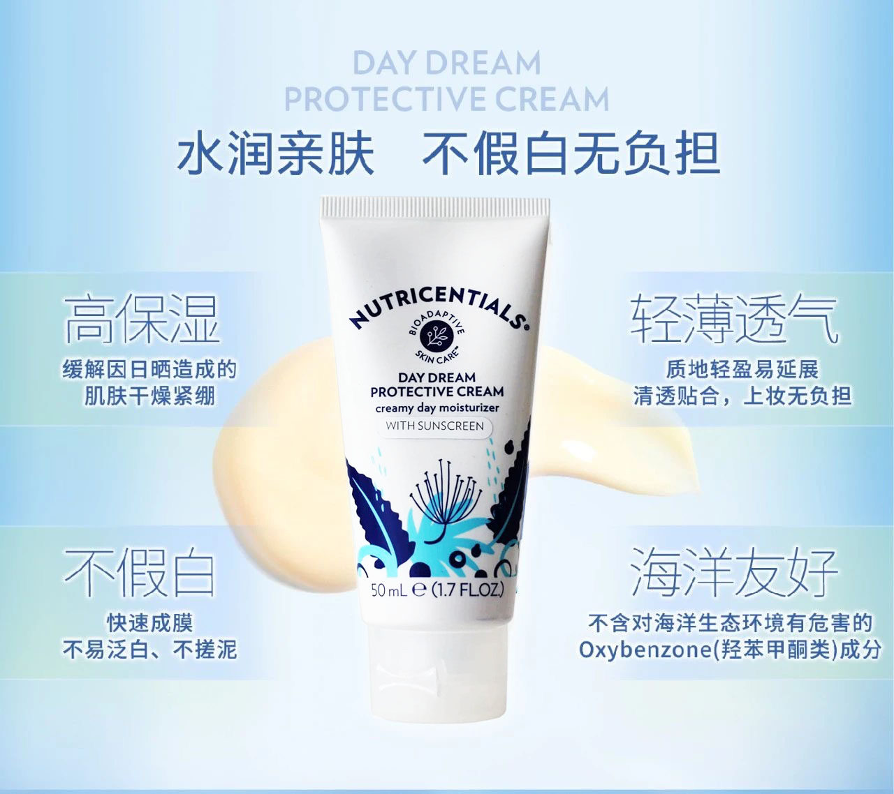 Nu Skin Overseas ruxin увлажнения сбалансированной защитой в день защиты, как Dream Day Day Cream Screation содержит защиту от солнца