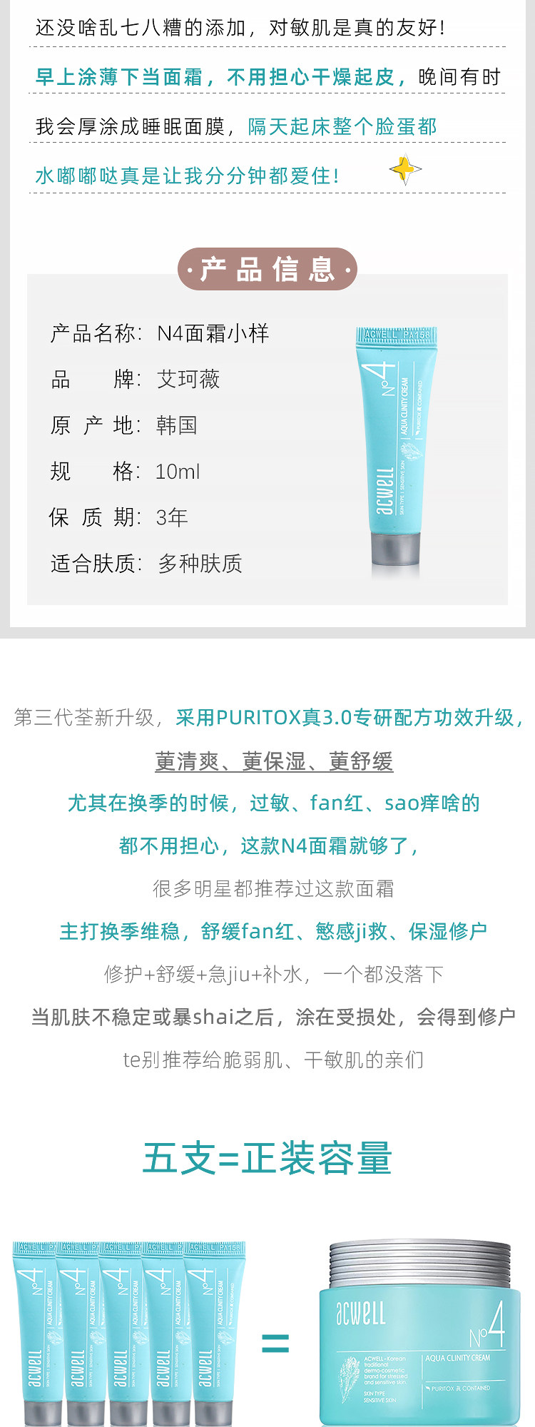 Увлажняющий успокаивающий восстанавливающий крем, Южная Корея, 10 мл