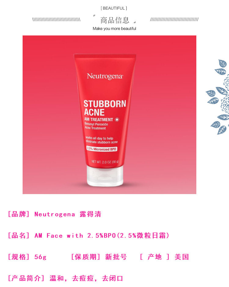 Spot Neutrogena Stubbornacne 2,5%BPO Cream Am Акне не -ежедневной крем 56