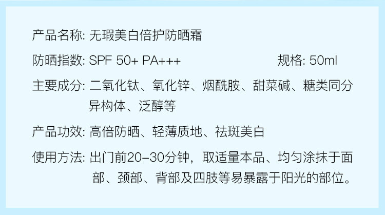 Осветляющий косметический солнцезащитный крем, двойная защита, SPF50