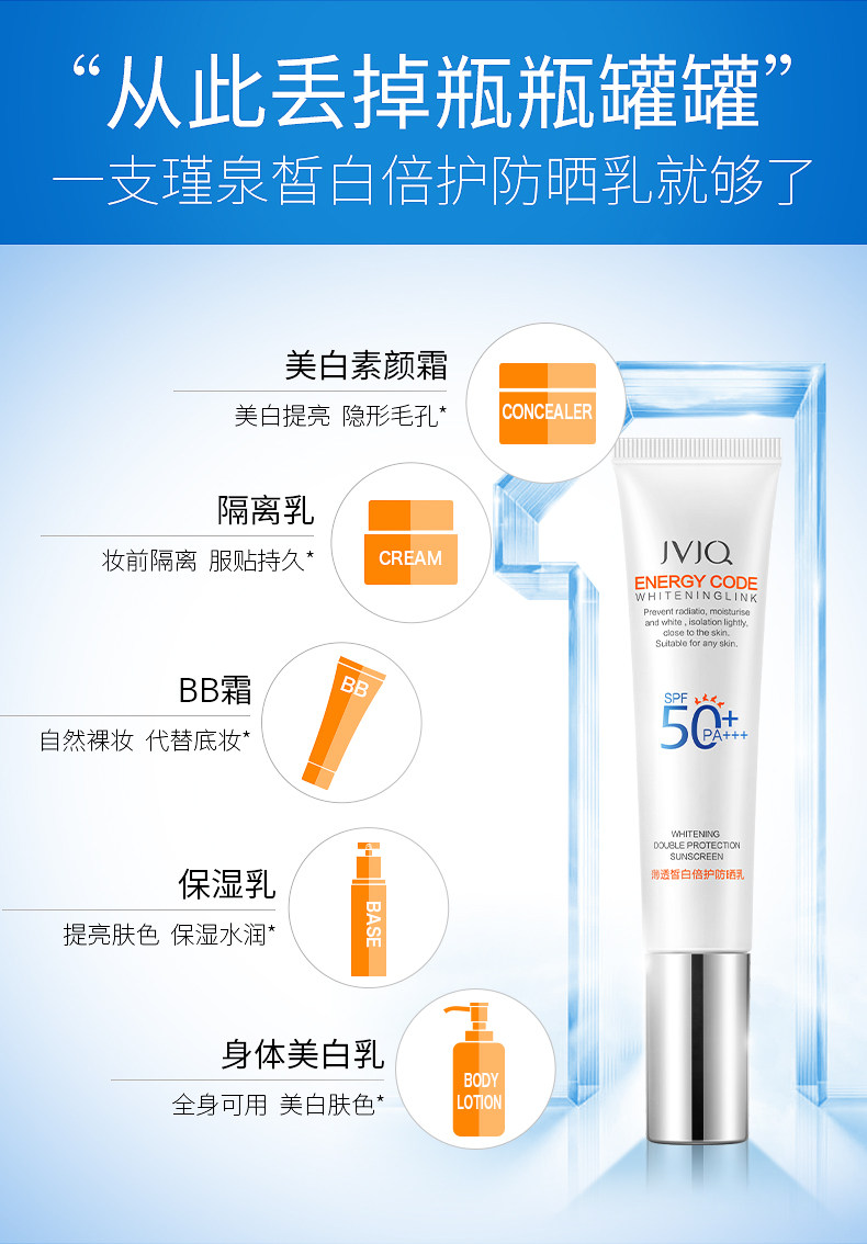 Осветляющий освежающий солнцезащитный крем для всего тела, двойная защита, SPF50