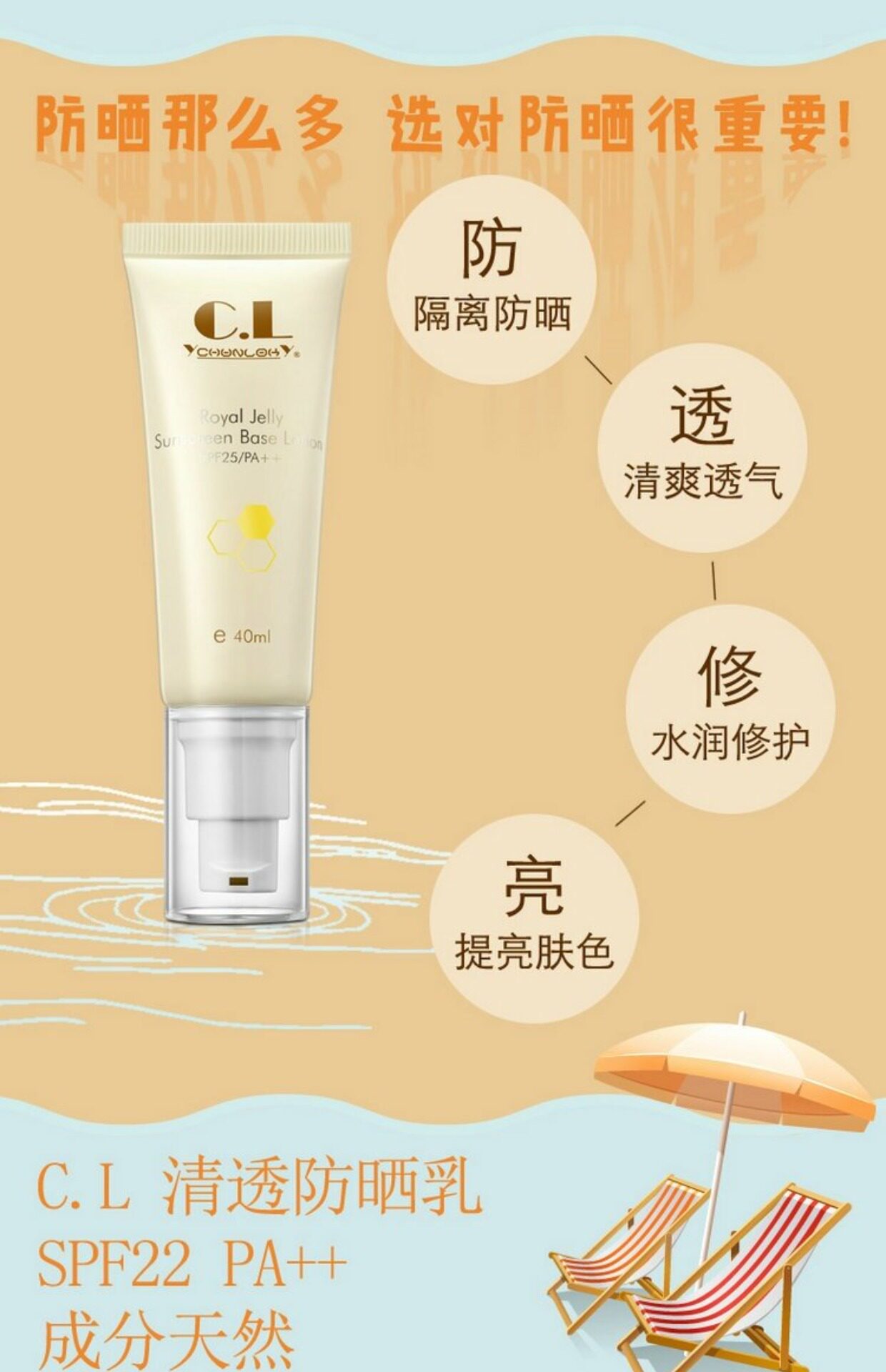 Солнцезащитный крем, освежающий легкий и тонкий дышащий тональный крем, SPF25, 40 мл