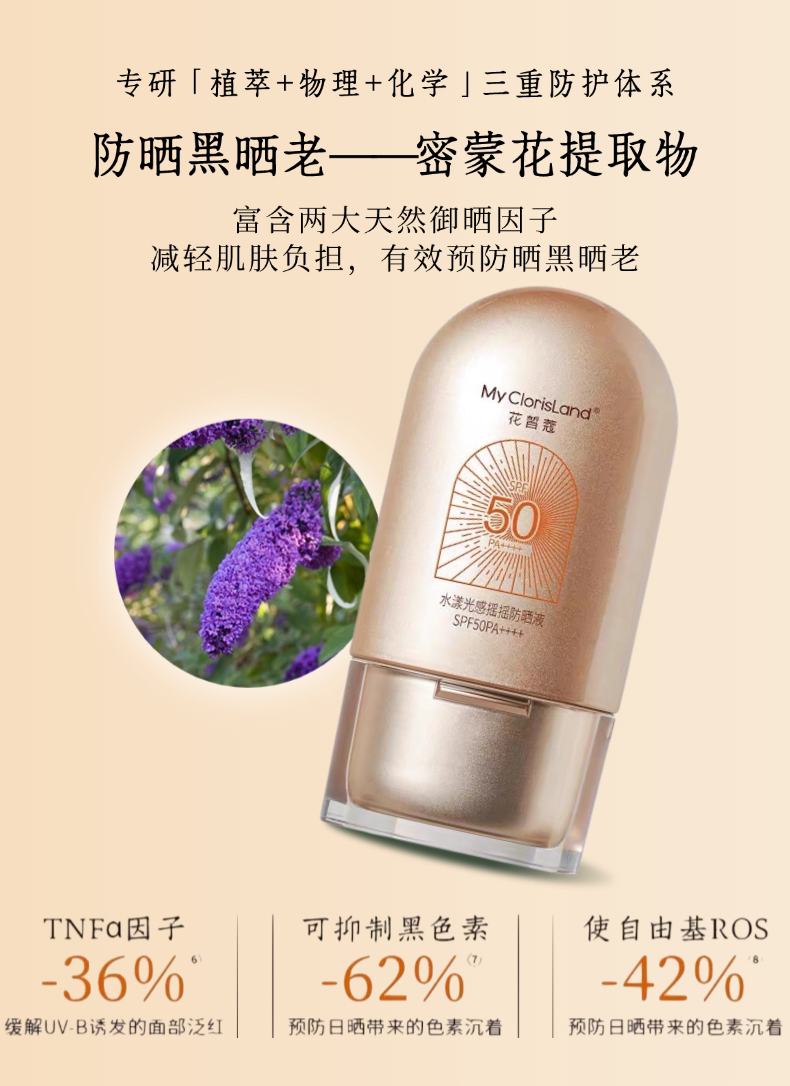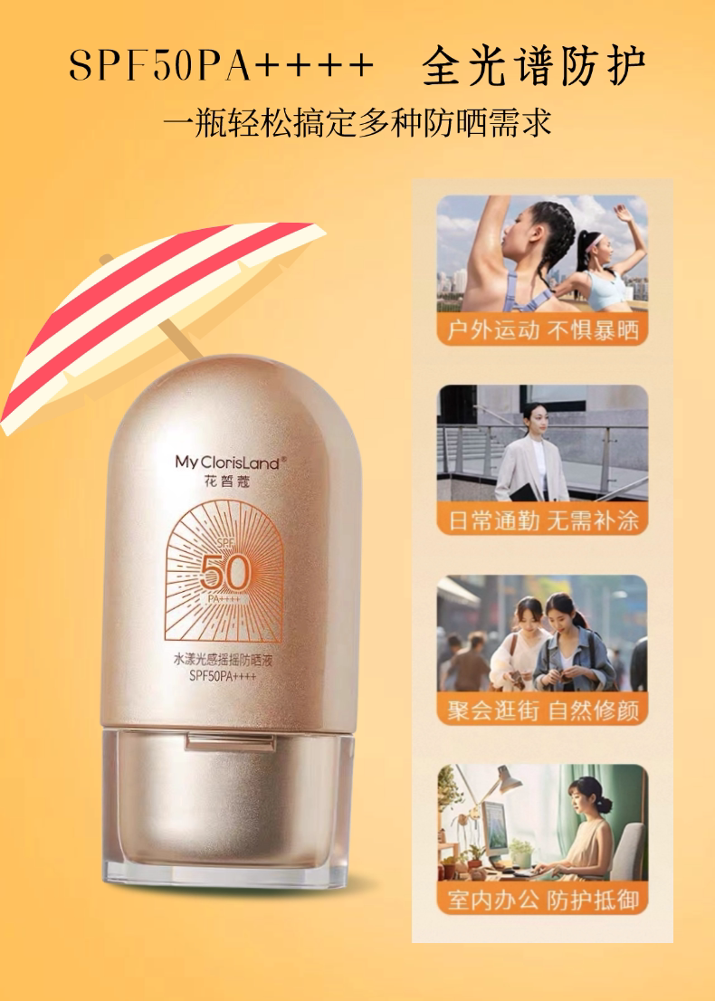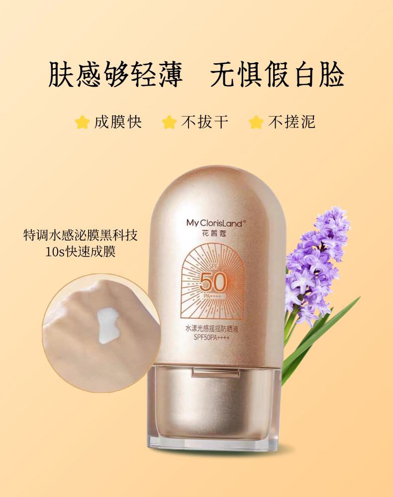 花皙蔻 Осветляющий солнцезащитный крем, тональный крем, водонепроницаемая качалка, 2 в 1, УФ-защита