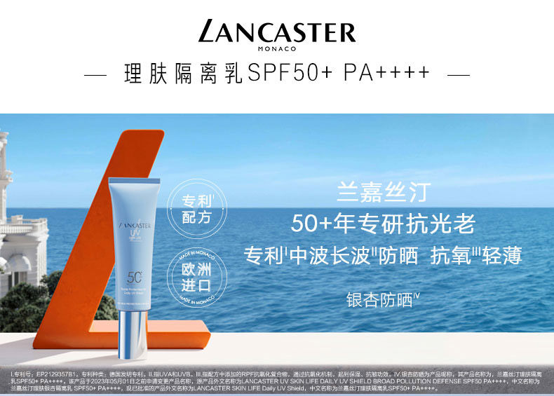 Lancaster/Lancastin Skin Care Care Ginkgo Изоляция крема изоляция молоко солнцезащитное крем