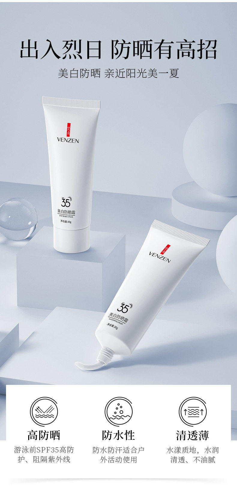 Осветляющий солнцезащитный крем, увлажняющий освежающий тональный крем, удаление веснушек, 30г, защита от солнца