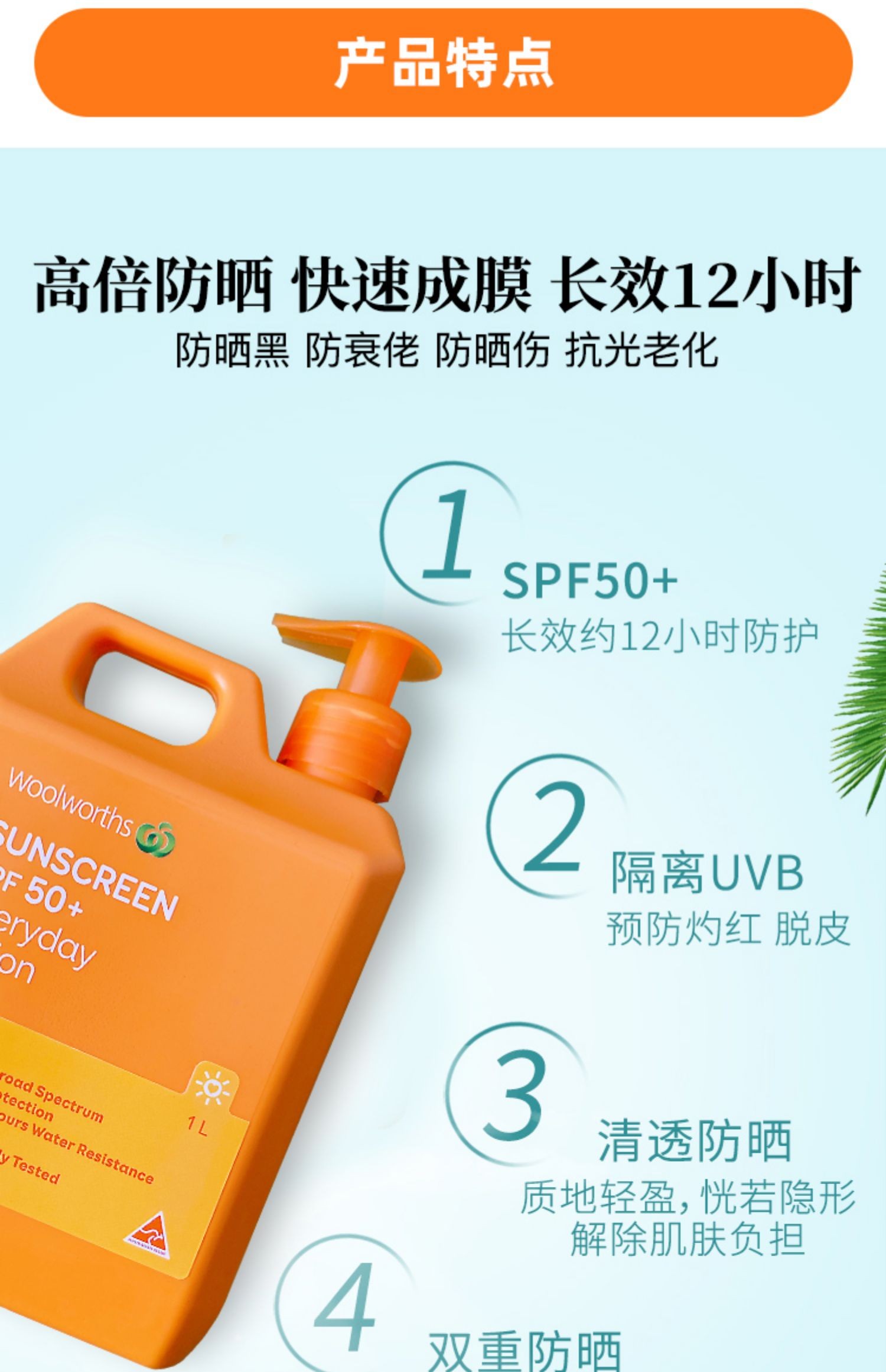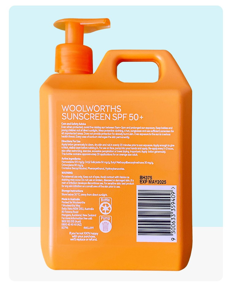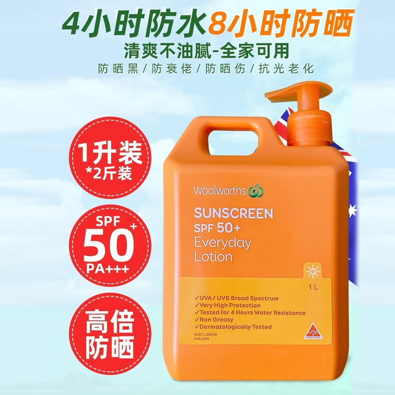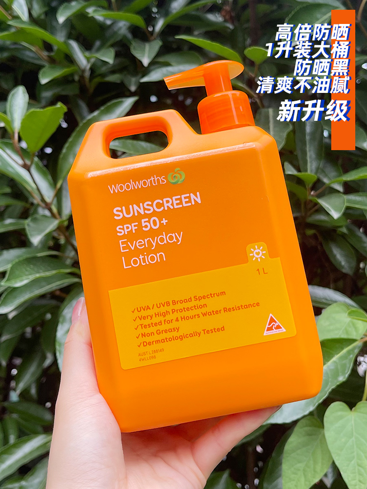 Австралия Woolworths Sunscreen Body Barrel Barrel Большая апельсиновая бутылка Детская военная подготовка мужская и женщина с большой бутылкой 1 л.