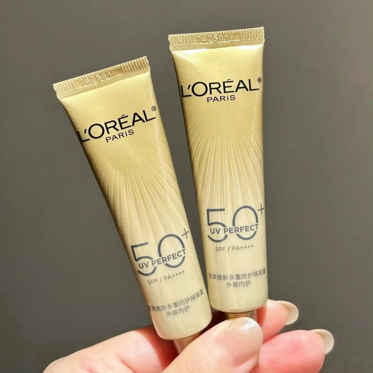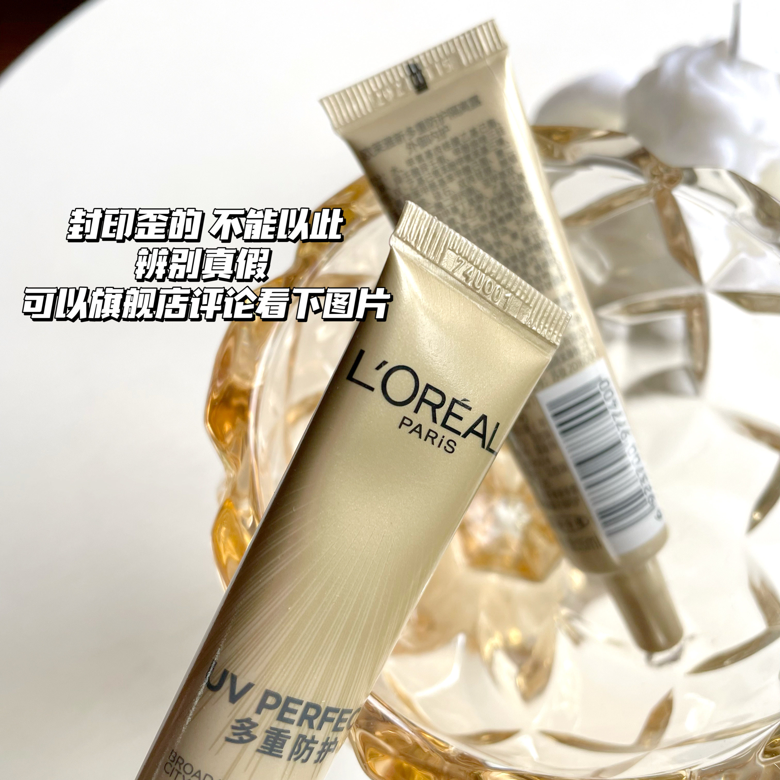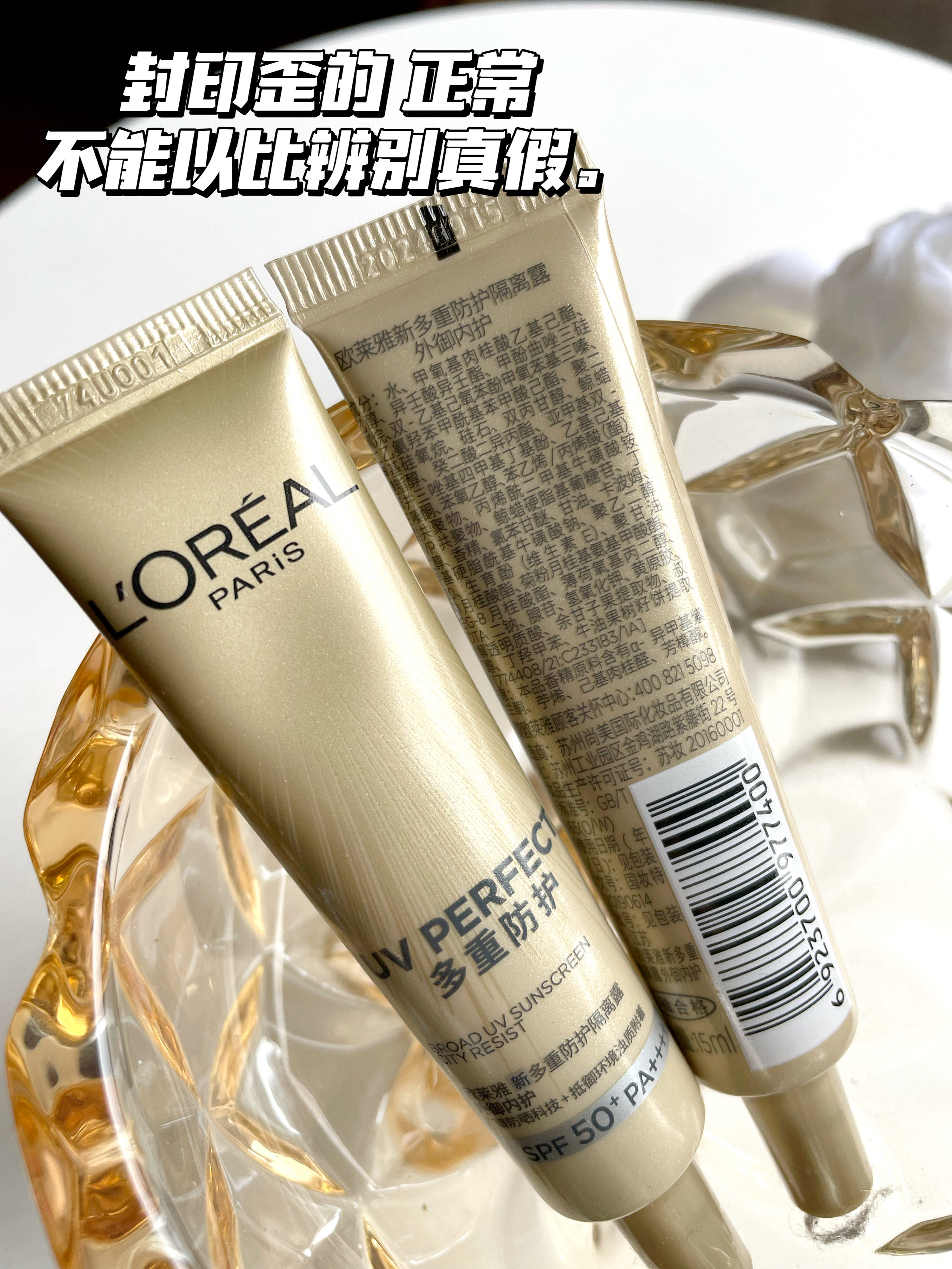 L'Oreal SunscreenНебольшая образец печати не посередине,Разница в шрифтах