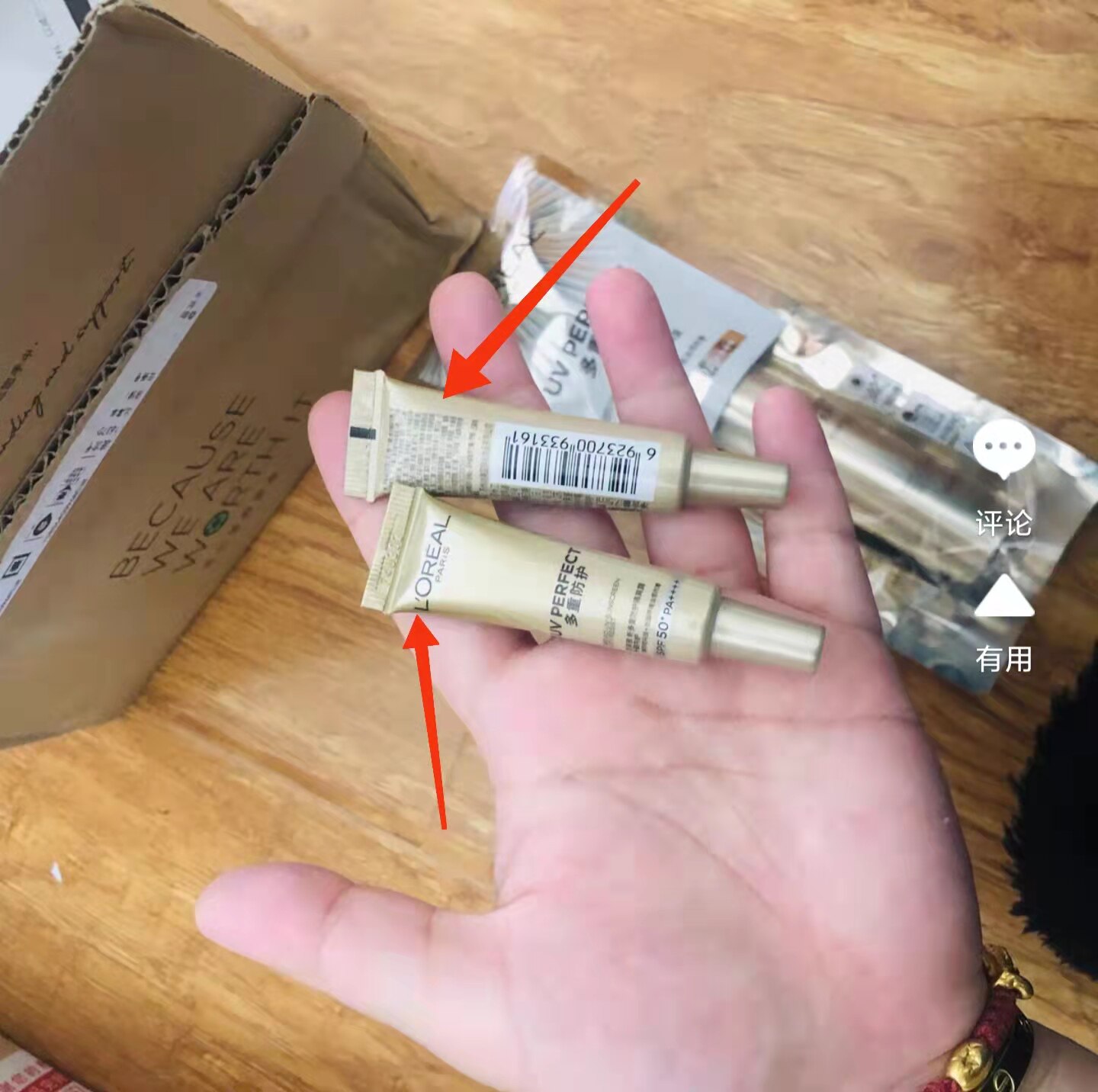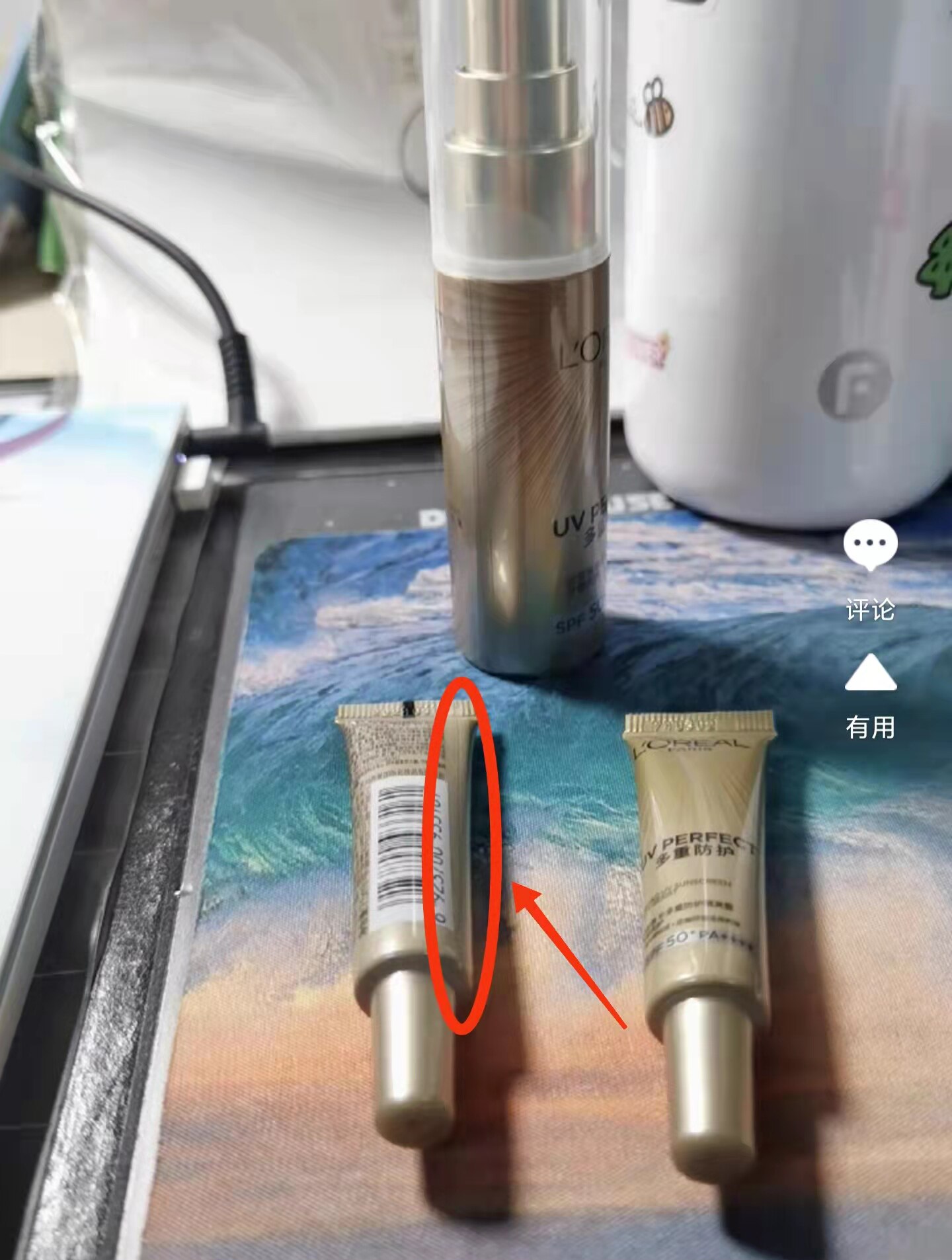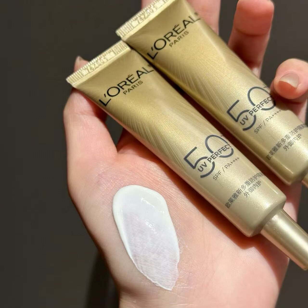 L'Oreal SunscreenНебольшая образец печати не посередине,Разница в шрифтах