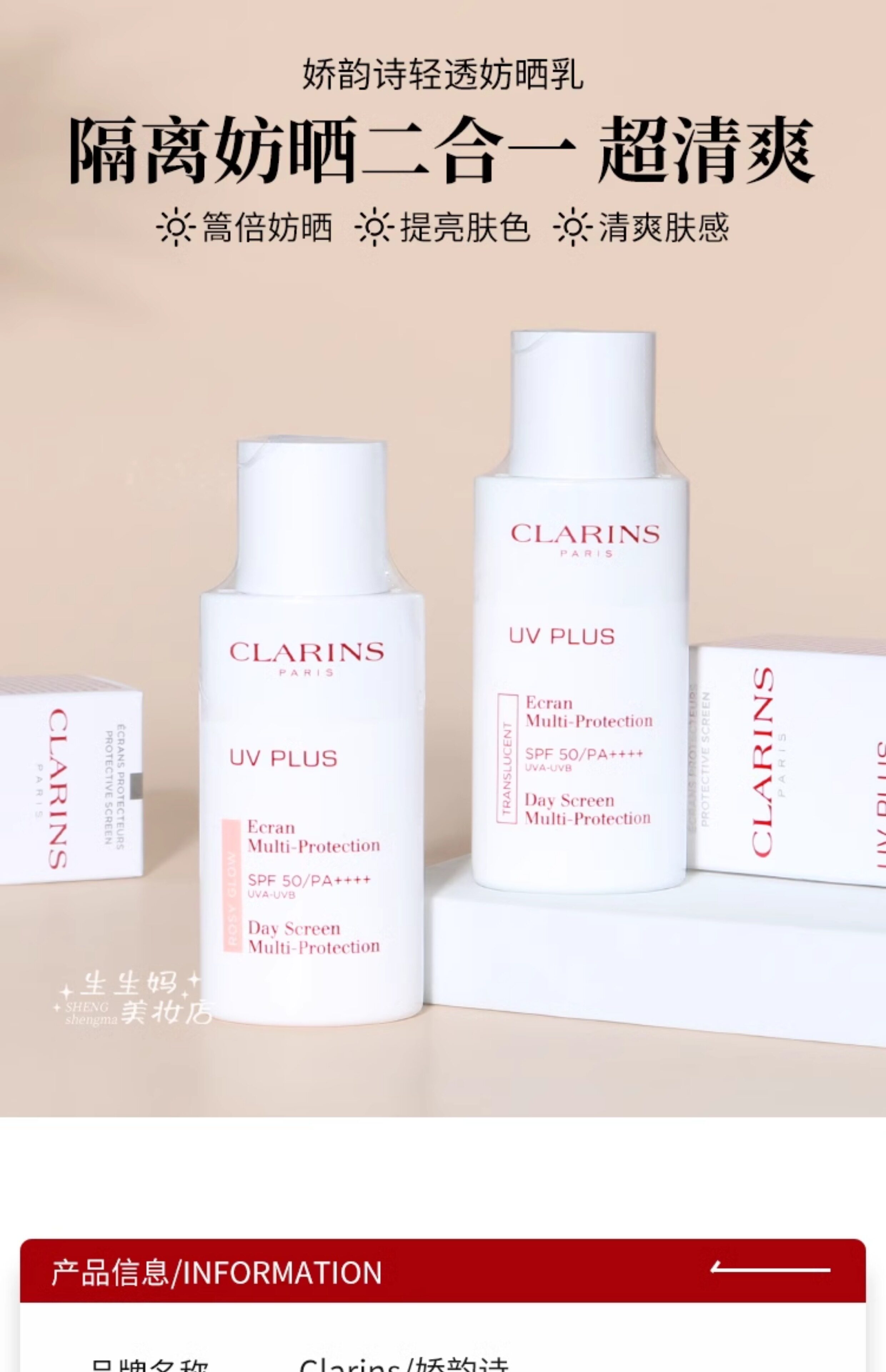 Clarins, розовый солнцезащитный крем, 50 мл