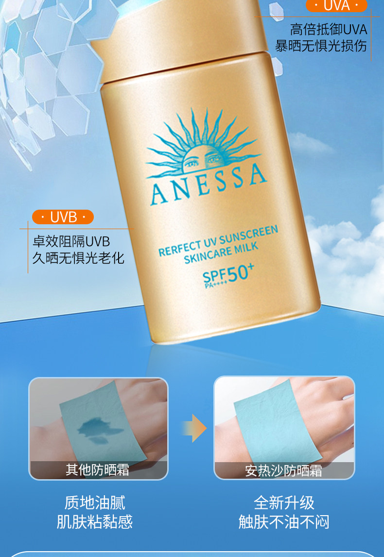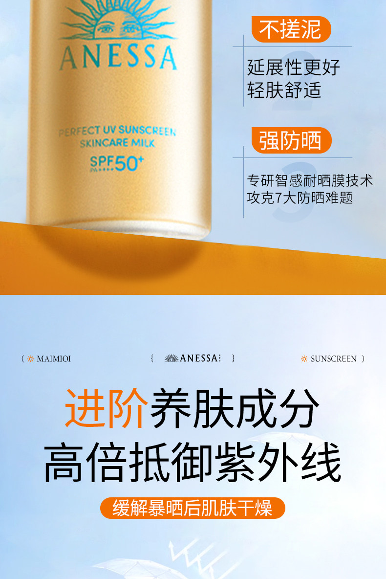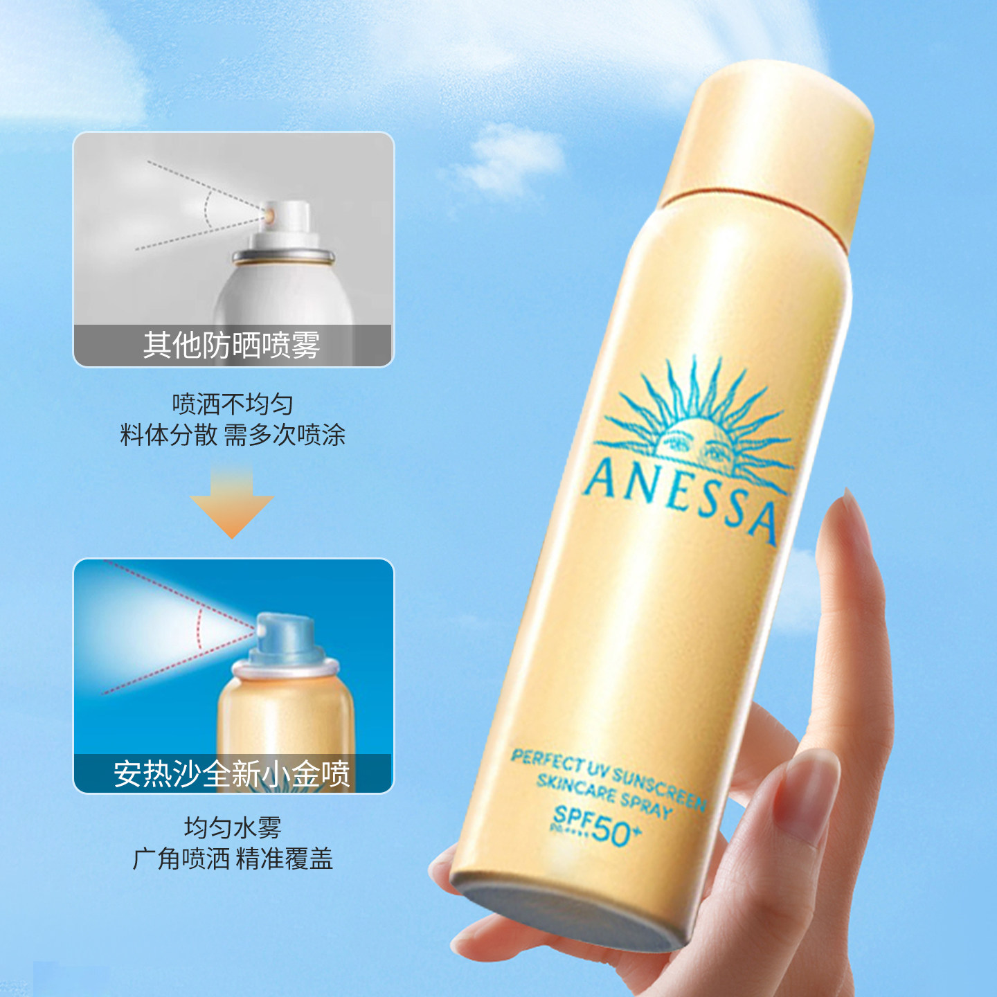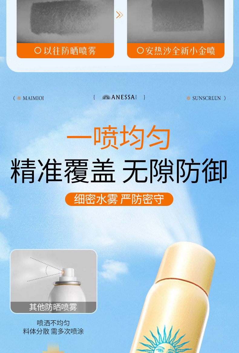 ANESSA/安耐晒 Маленькая золотая бутылочка-спрей Anna, солнцезащитный крем, официальный флагманский магазин, подлинный анти-УФ, 60 г