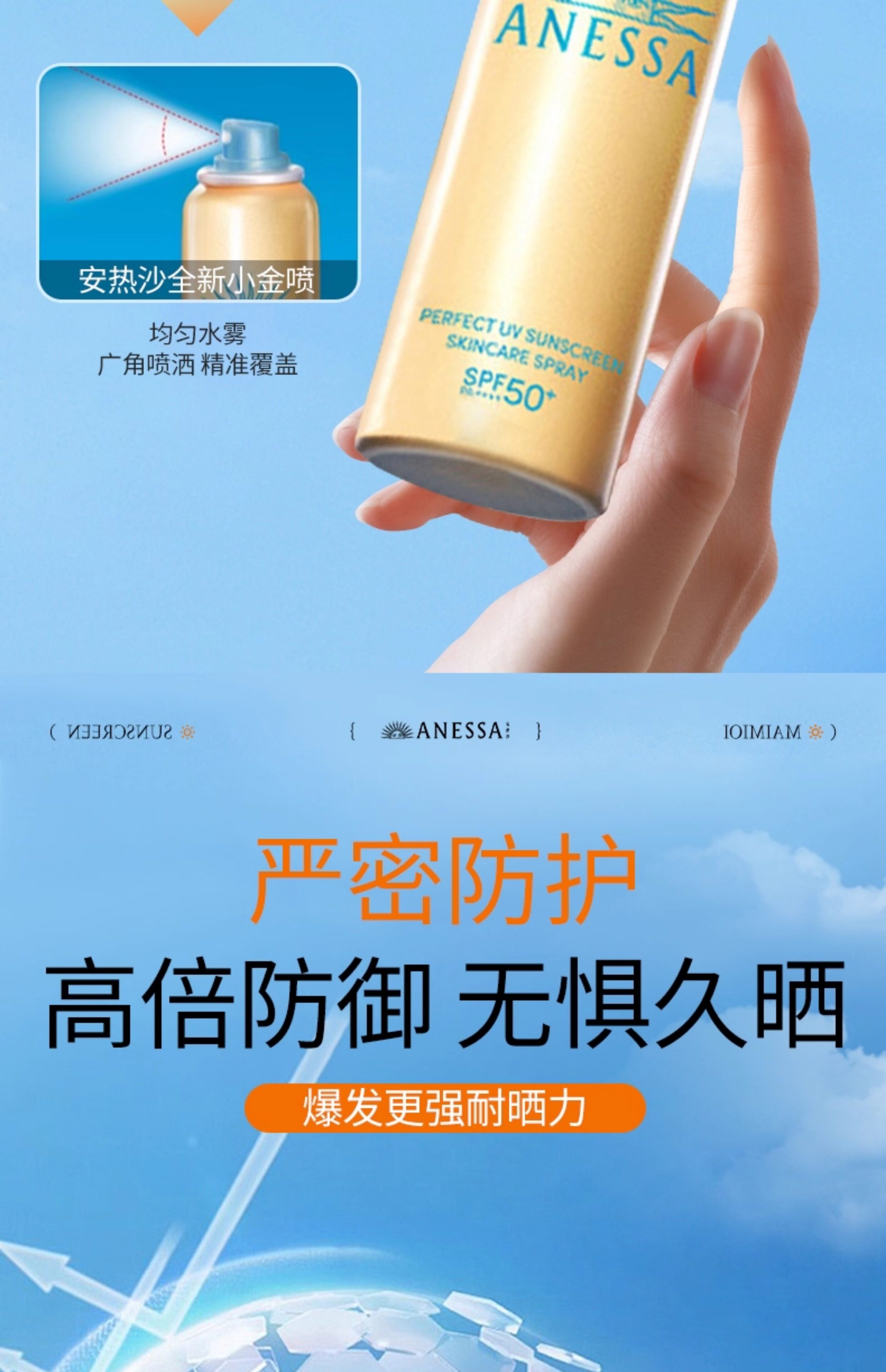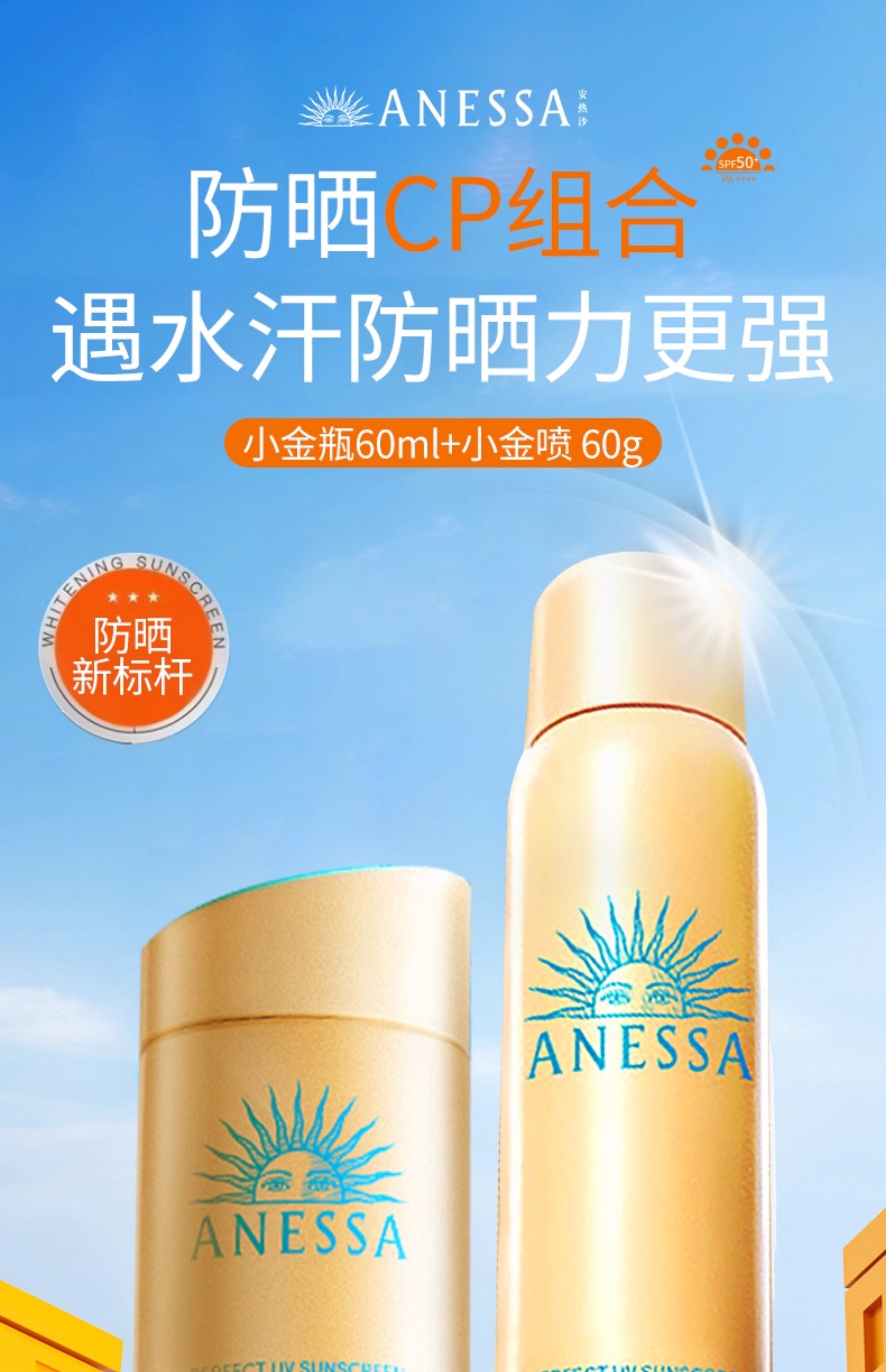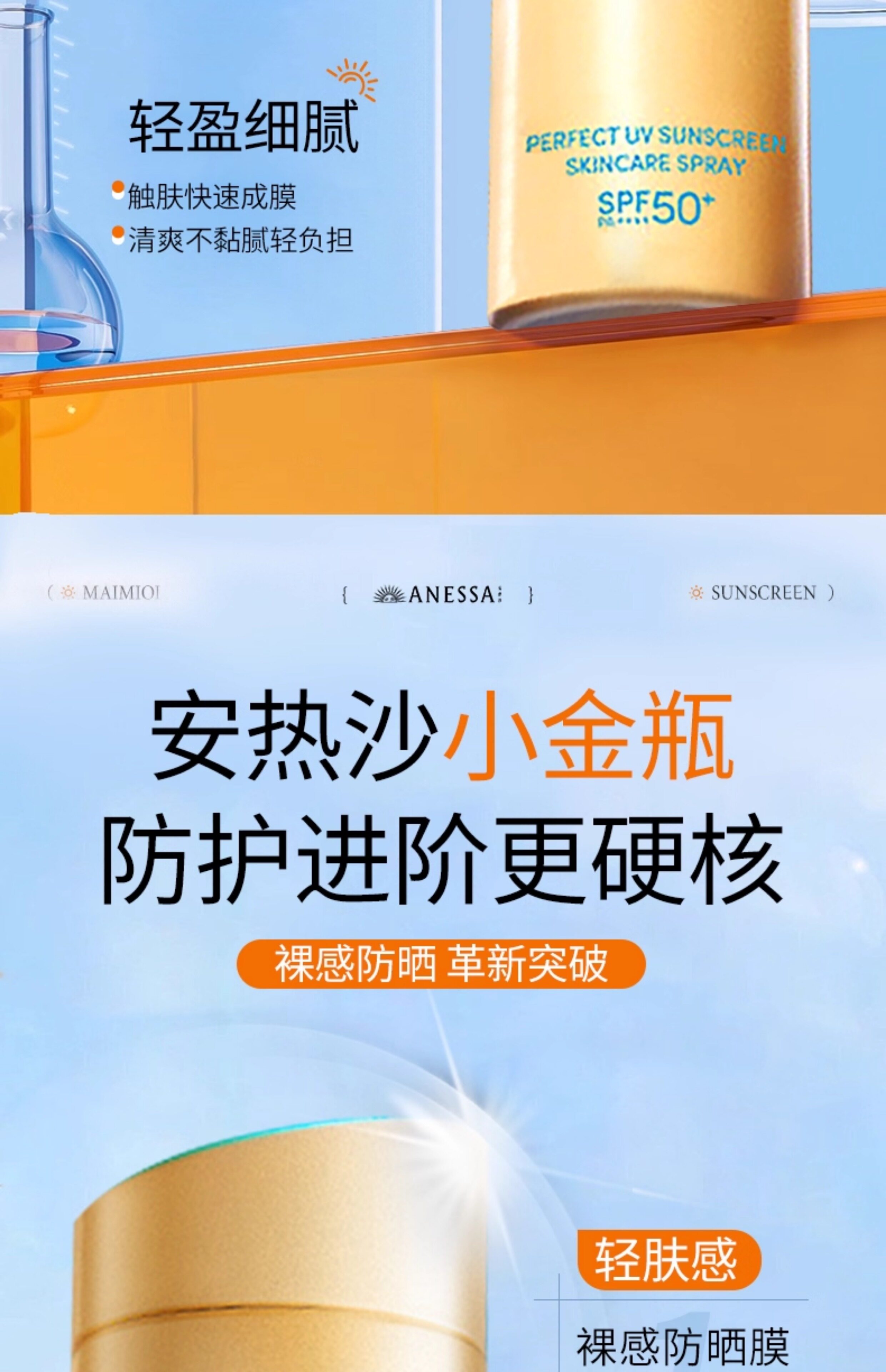 ANESSA/安耐晒 Маленькая золотая бутылочка-спрей Anna, солнцезащитный крем, официальный флагманский магазин, подлинный анти-УФ, 60 г