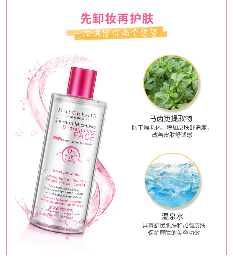 Мягкое средство для снятия макияжа для лица для глаз и губ, бережная очистка, «три в одном»