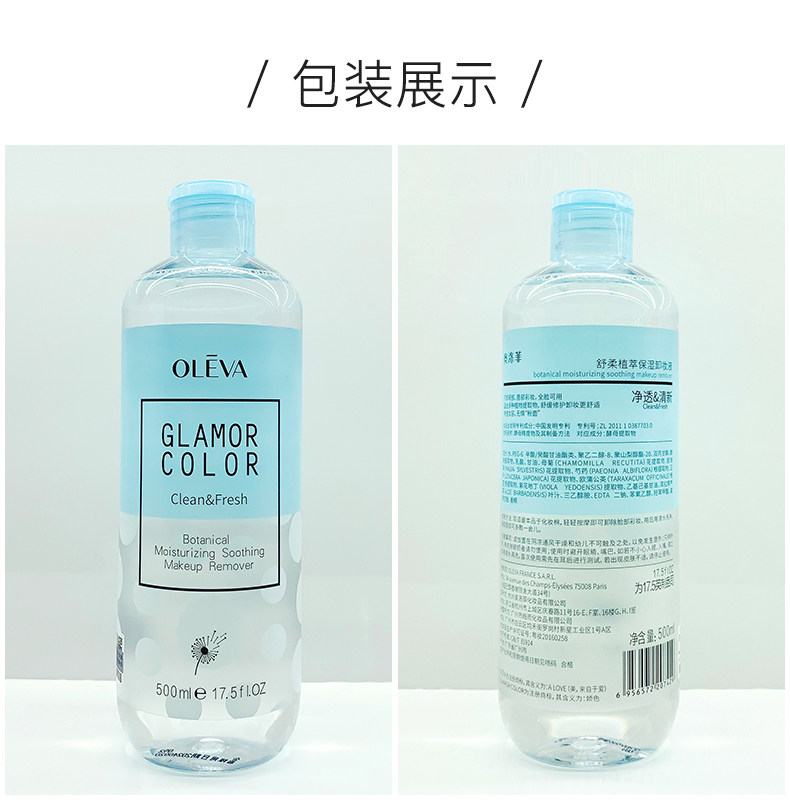 Oleva/奥洛菲 Увлажняющее средство для снятия макияжа с экстрактом растений, увлажняющая база под макияж, 500 мл, глубокое очищение
