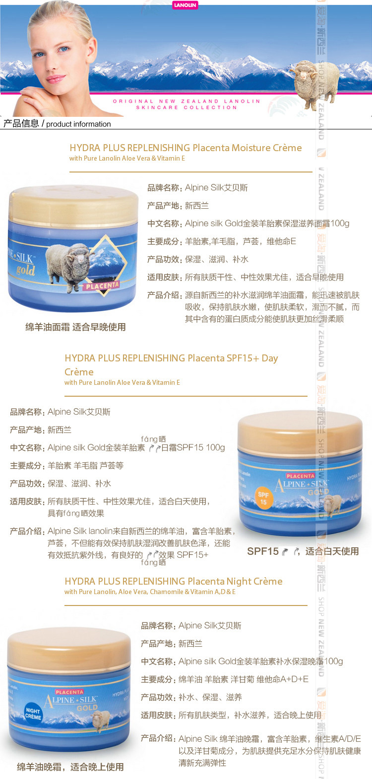 Здравствуйте, дорогой покупатель: теперь вы посещаете новозеландскую доставку альпийских шелковых золотых овец плаценты хлопковое масло ежедневно увлажняют крем. Этот продукт - оригинальная подлинная Новая Зеландия.Владелец выберет для вас в Новой Зеландии, чтобы обеспечить качество.Пожалуйста, купите с уверенностью!