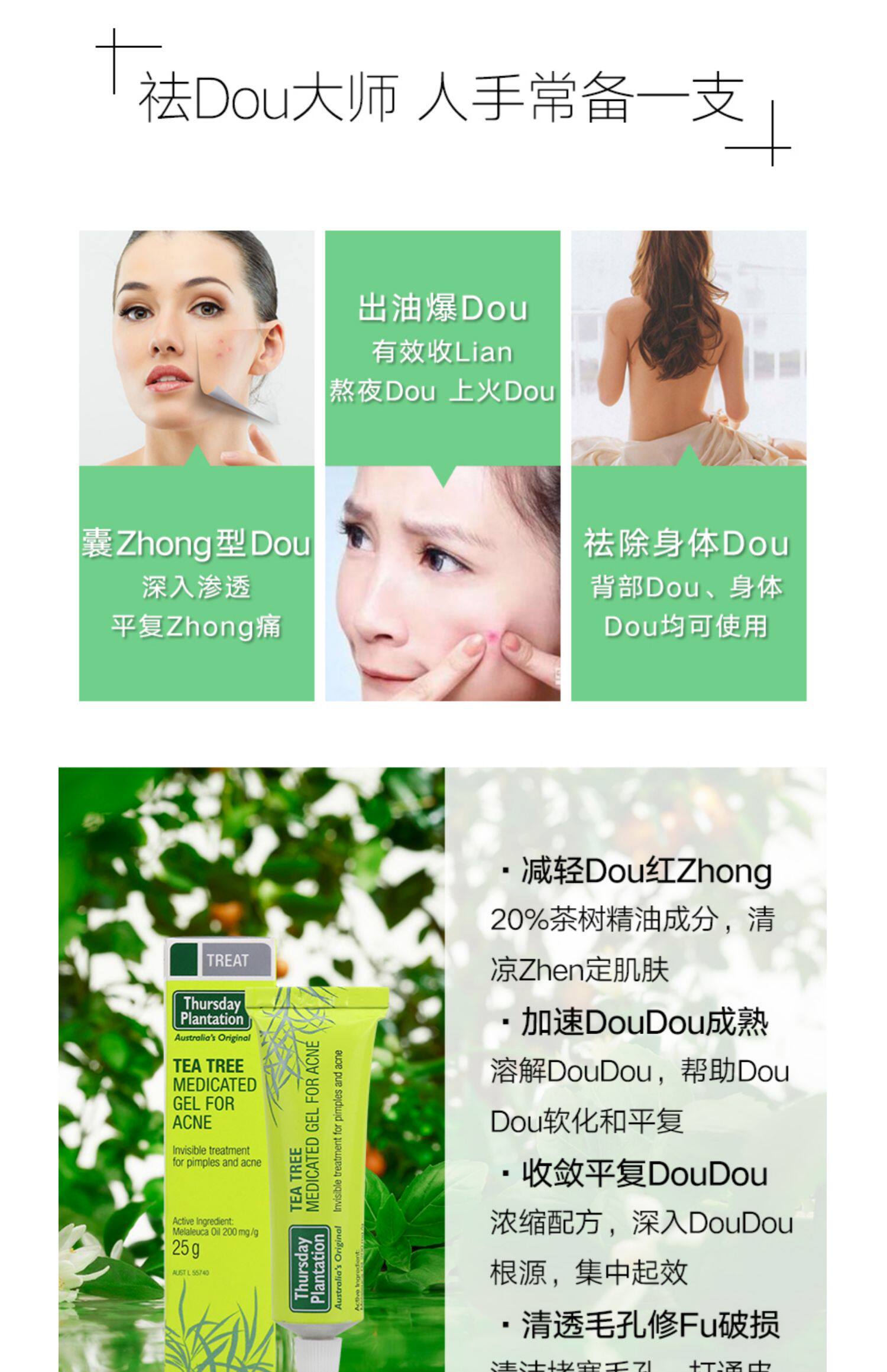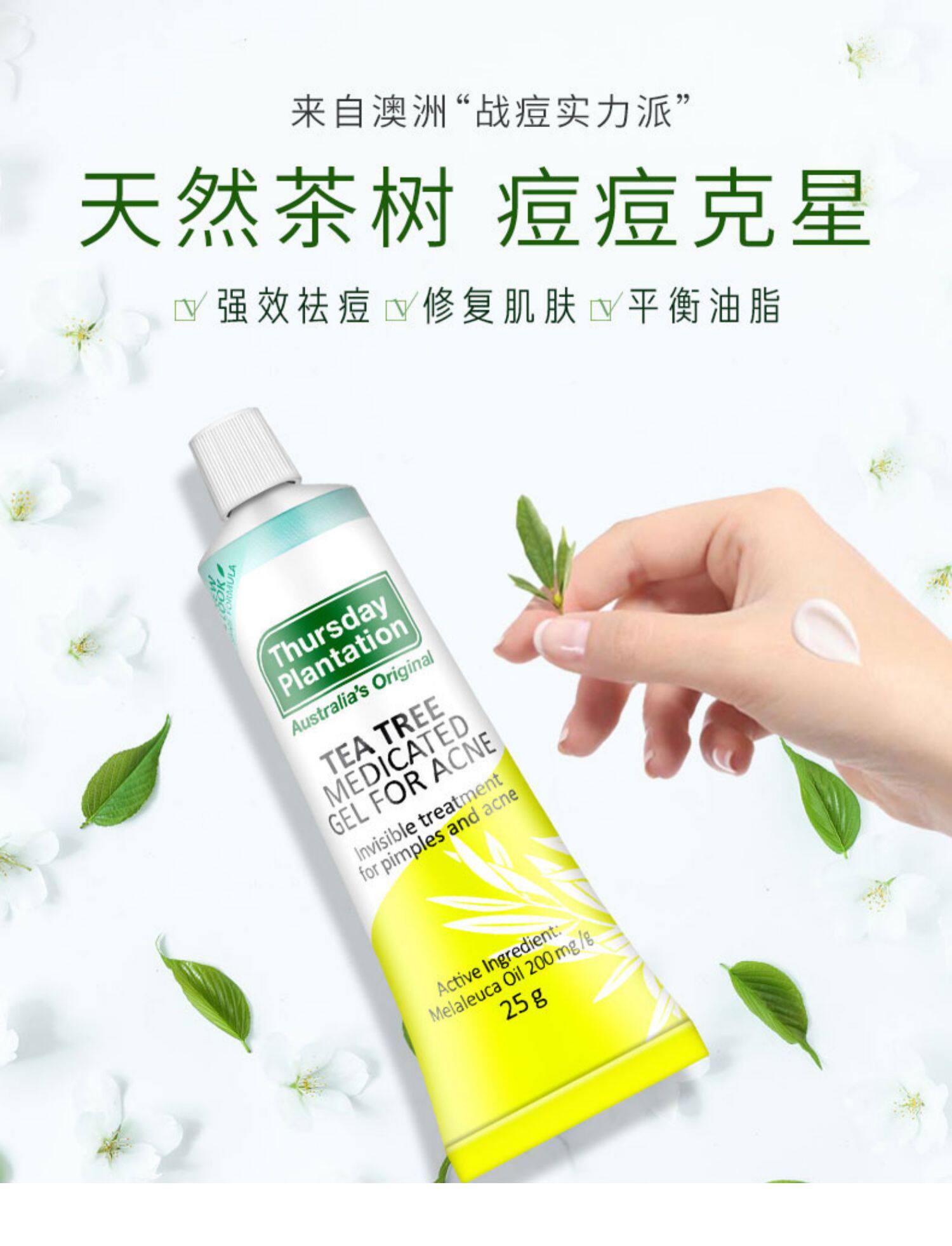 Австралия четверг плантация четверг фермы чайное дерево масла от прыщей гелевой гель крем 25 г