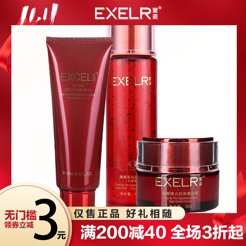 Подтягивающий увлажняющий набор для ухода за кожей, антиокислительное очищающее молочко, крем, комплект, 3 предмета