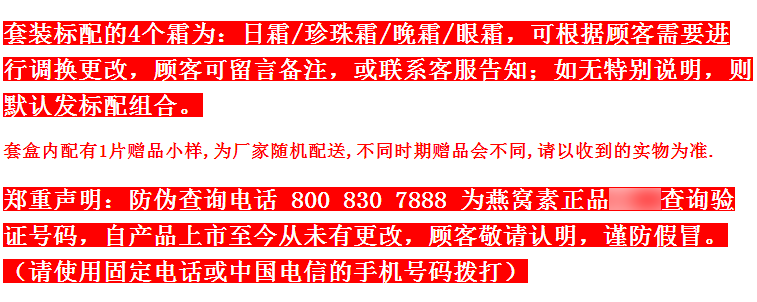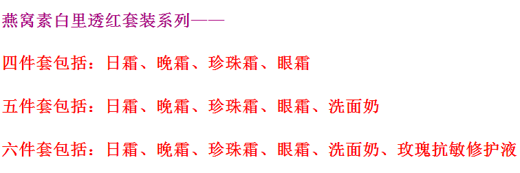 | Цвет: | Одиночная бутылка-сунфрона (честная кожа), Крем с одной бутылкой (разбавленные пятна), Один флакон-Жемчужный крем, Крем для глаз в одном флаконе, Восстанавливающий лосьон с розой в составе, Один флакон – очищающее средство для лица в белой упаковке (без пены), Набор из пяти предметов (4 крема + очищающее средство для лица в белой коробочке), Набор из четырех штук (4 крема), Набор из шести предметов (4 крема + белое молочко + восстанавливающий раствор), Набор из пяти предметов (4 крема + восстанавливающий раствор), Один флакон – золотое очищающее средство для лица (с пеной), Набор из пяти предметов (4 крема + золотое очищающее средство для лица), Набор из шести предметов (4 крема + золотое молочко + восстанавливающий раствор) |
