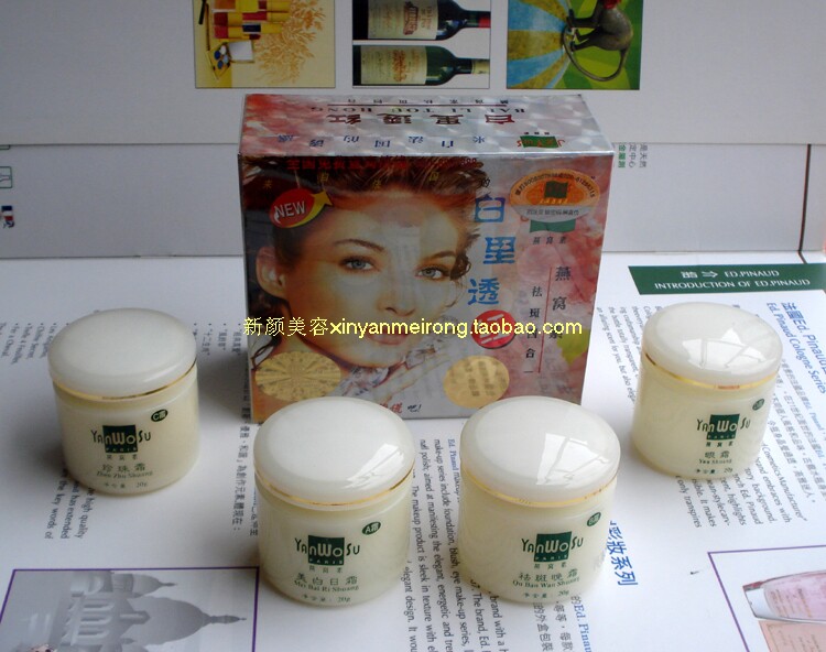 - Набор из пяти предметов (4 крема + очищающее средство для лица в белой коробочке)