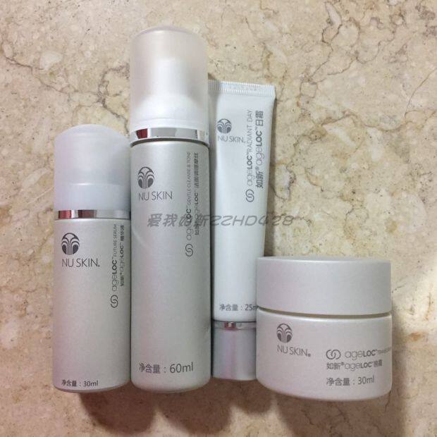 Nuskin, комплект, очищающее молочко, мусс, дневной крем, эссенция