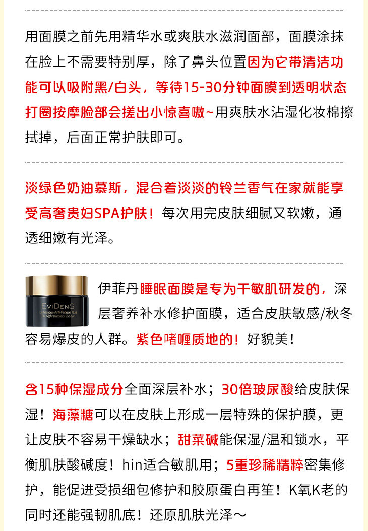 Маска для лица, ночной коллаген, сужает поры, Франция
