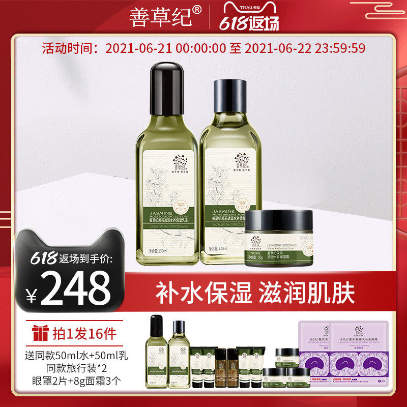 善草纪 Жасминовый чай, молочко, крем, увлажняющий комплект для сухой кожи подходит для мужчин и женщин, второе поколение
