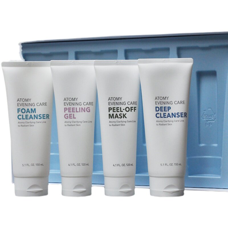 Комплект для ухода за кожей, средство для снятия макияжа, отшелушивающее очищающее молочко, отрывная маска для лица, 4 предмета, контроль жирного блеска, сужает поры