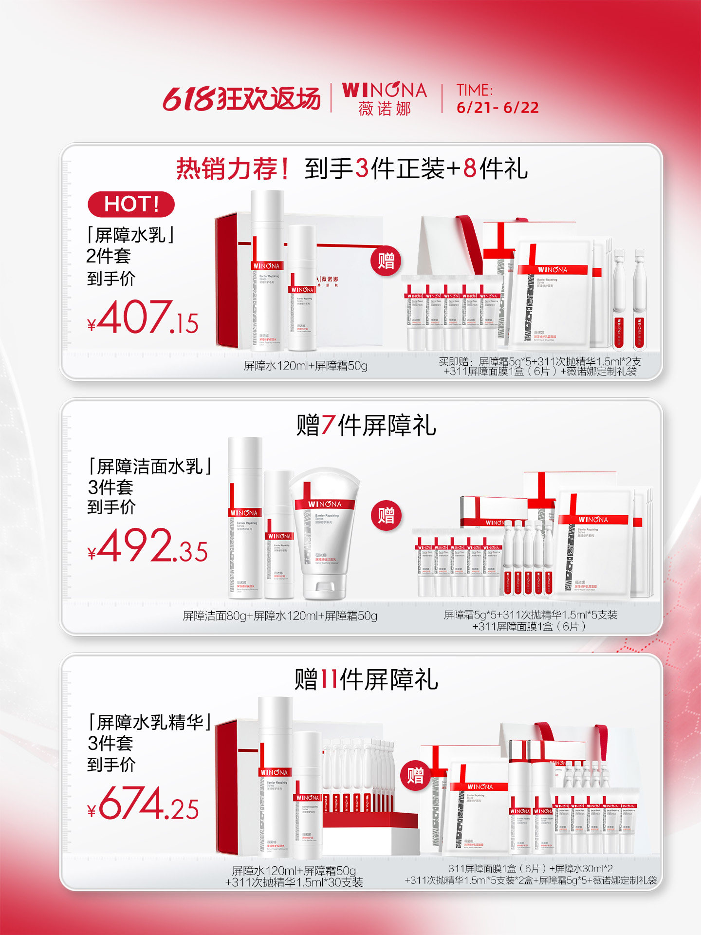 [Double 11 Spree Shopping] Winona 311 Барьерная эмульсия Набор для ремонта на уровне больницы Специальный увлажняющий крем